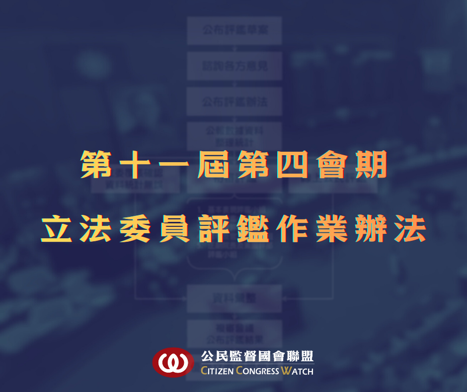 【立委評鑑】公督盟第十一屆第四會期立委評鑑辦法公告