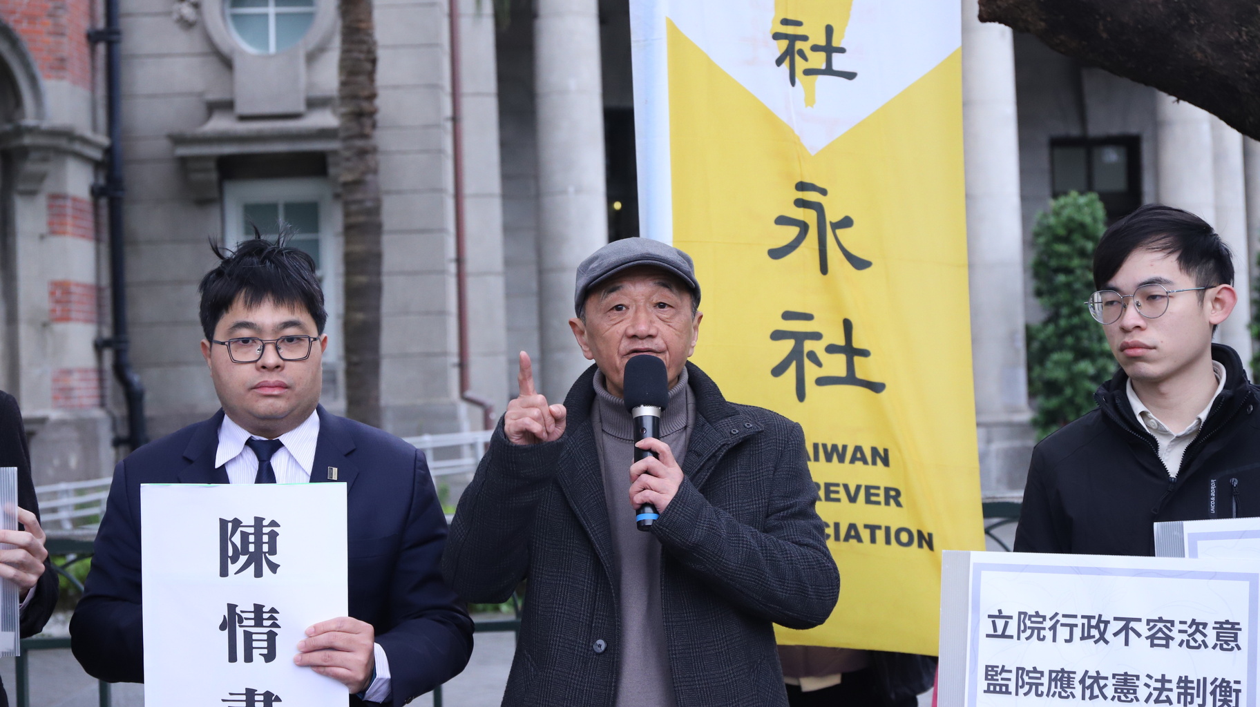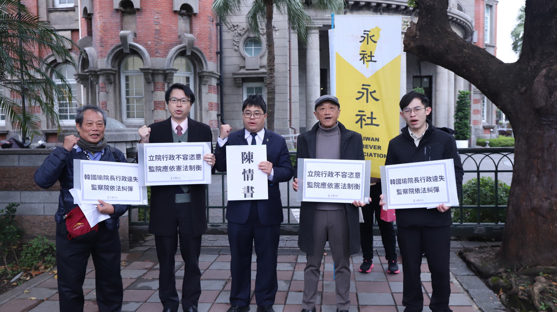 近期,立法院在總預算案及多項法律案送交行政院的程序上,出現恣意操弄等重大違失。針對立法院總預算案及法律案送出期日之恣意操作及濫權等違失,台灣永社、辜寬敏基金會、台灣北社、公民監督國會聯盟等民間團體於2/8週六上午十點在監察院前共同召開記者會,說明立法院恣意行政行為嚴重違失,向監察院陳情,請求依法調查糾彈立法院長韓國瑜及立法院秘書長周萬來行政違失,以維護民主憲政。