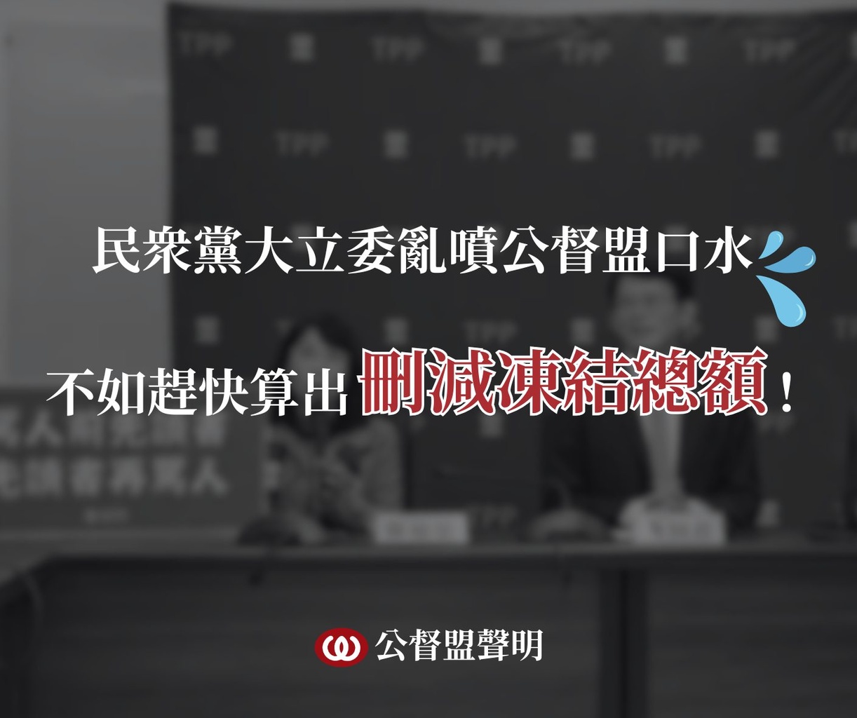 【聲明稿】民眾黨大立委亂噴公督盟口水,不如趕快算出刪減凍結總額!