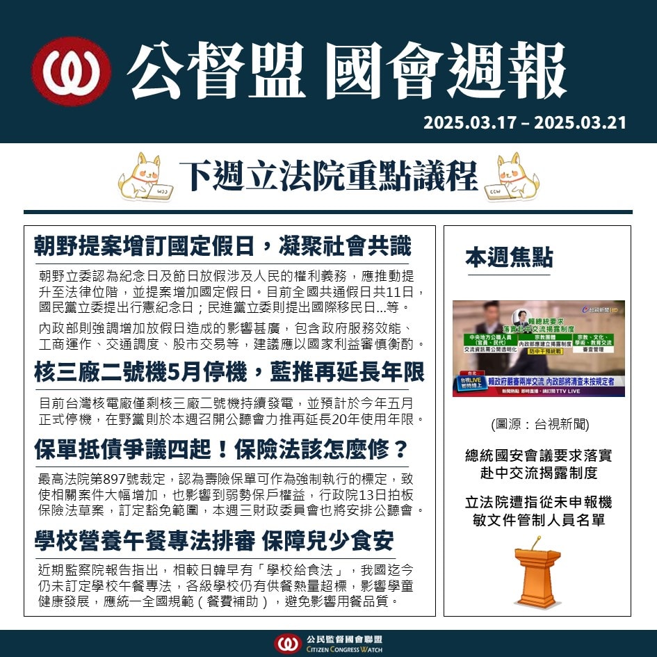■公督盟國會週報─阿督帶你看下週立法院做什麼?