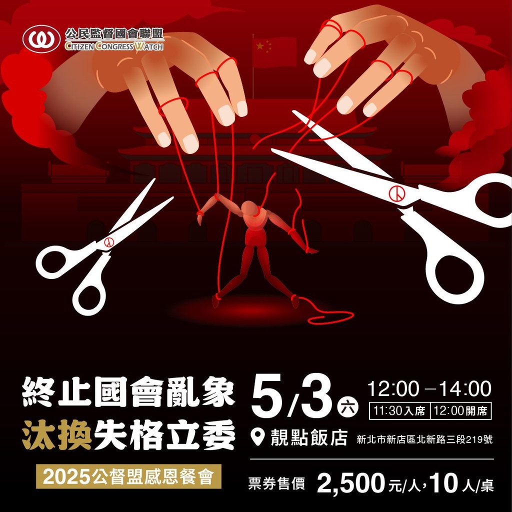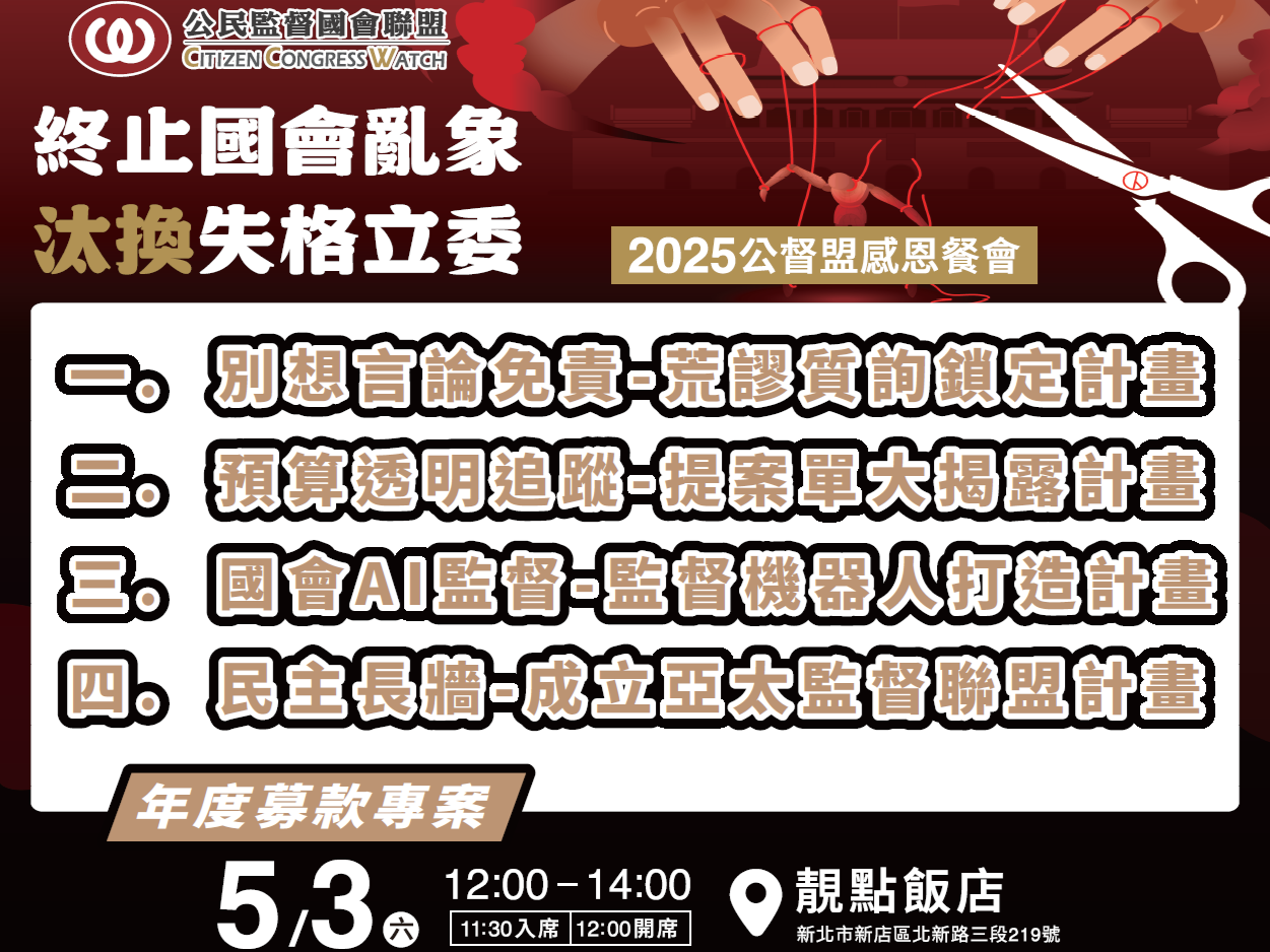 【公督盟2025感恩餐會資訊:終止國會亂象,淘汰失格立委】