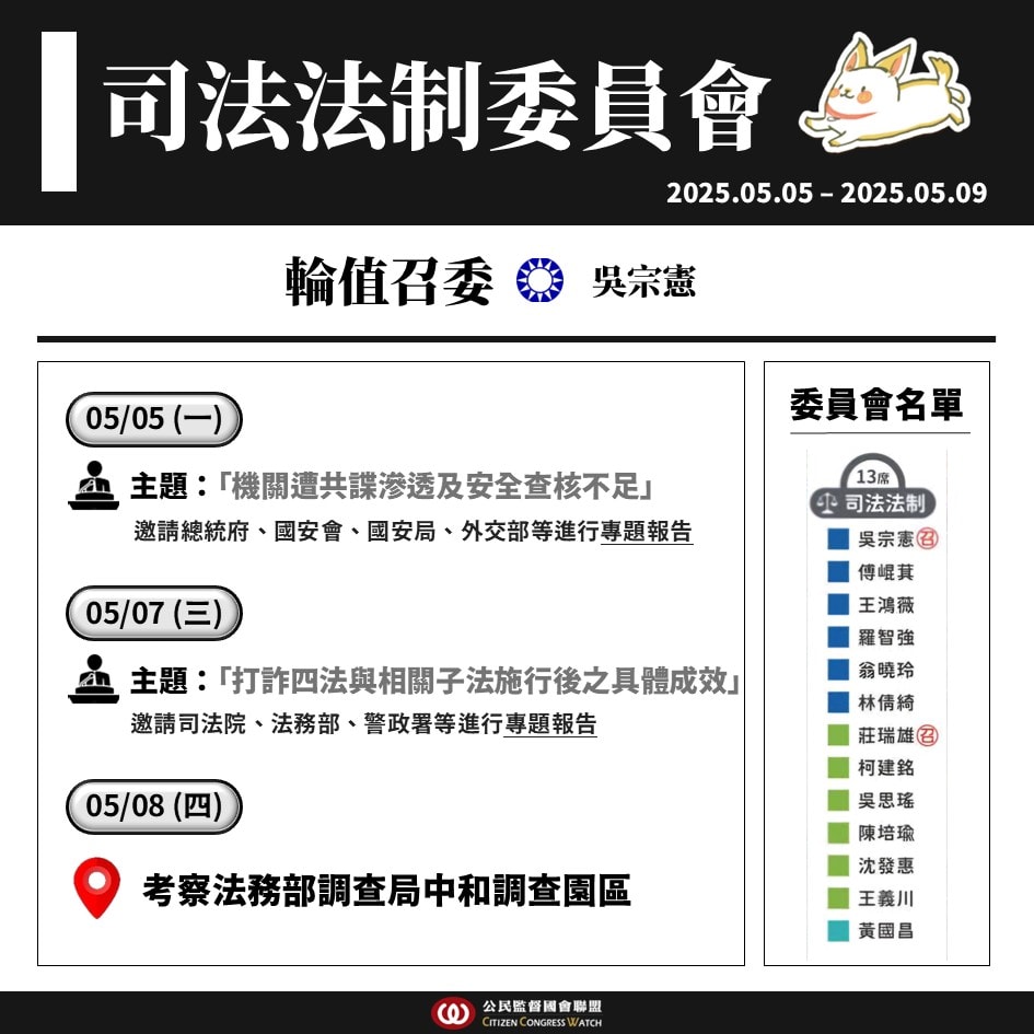 近期台灣內部共諜案頻傳,立法院司法及法制委員會再度將邀請總統府、國安會等相關單位,就共諜滲透進行專題報告。