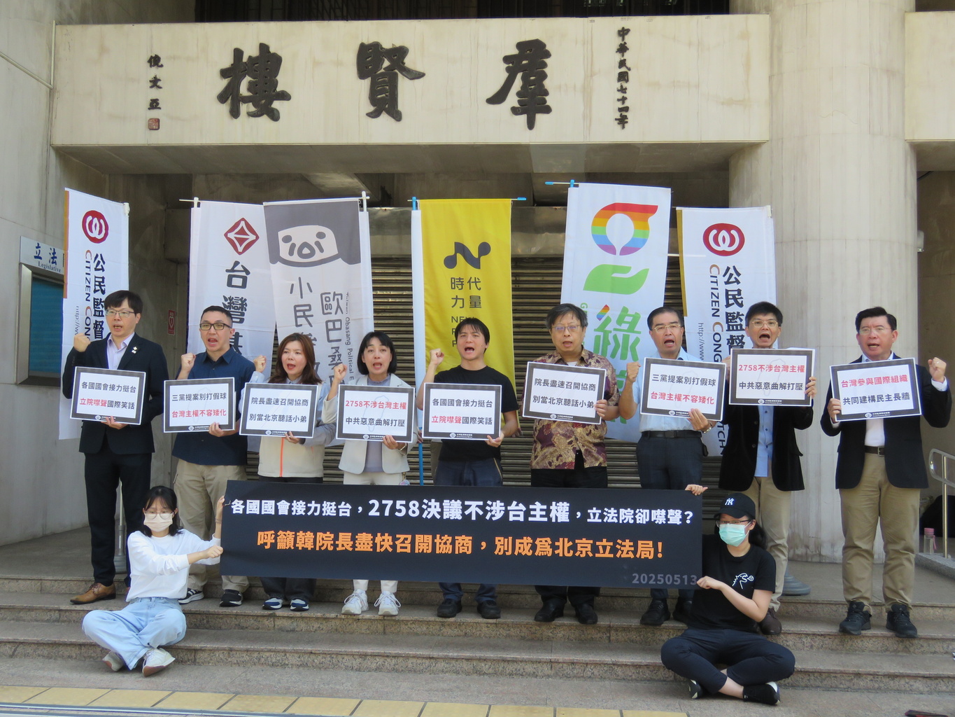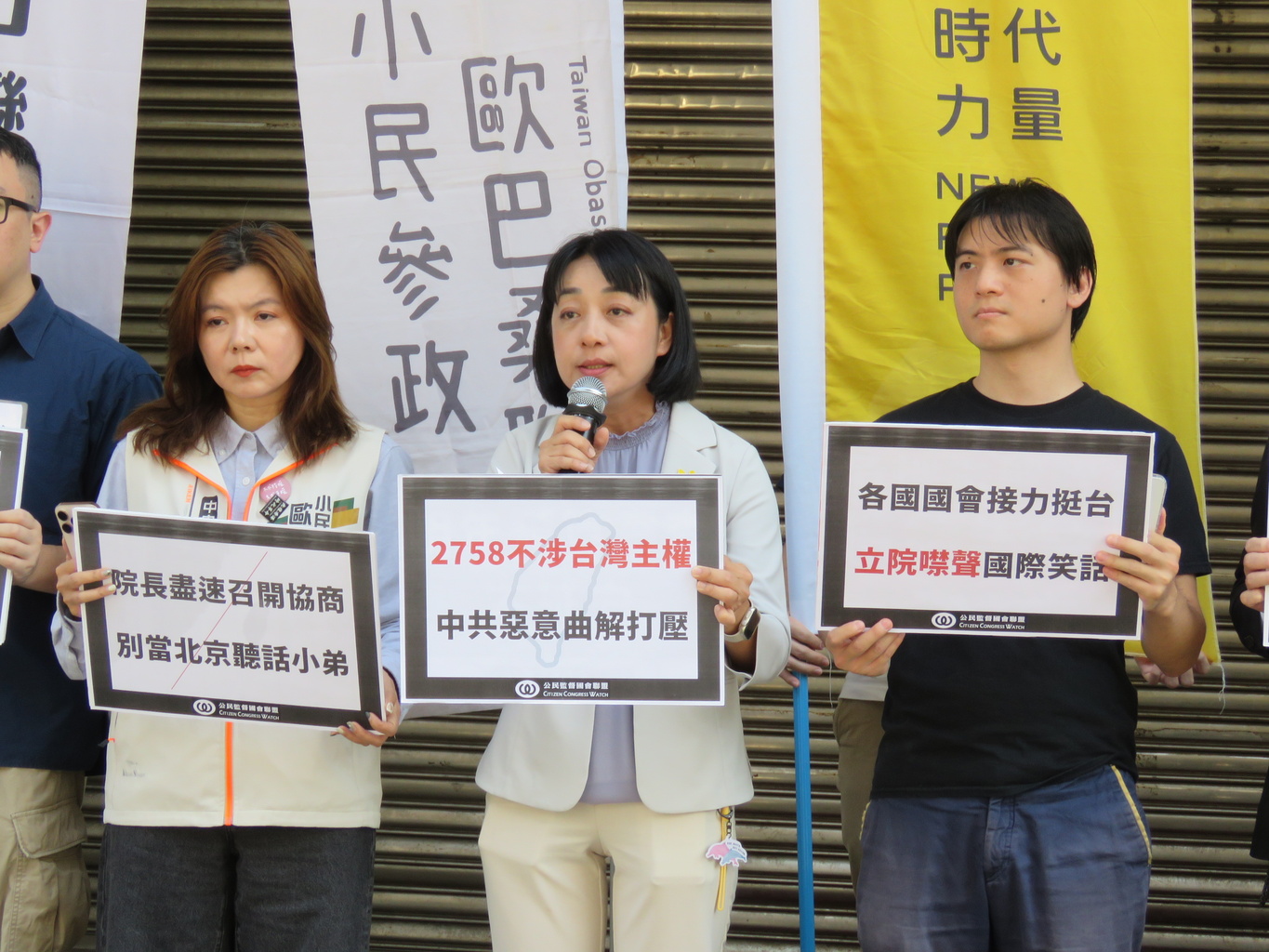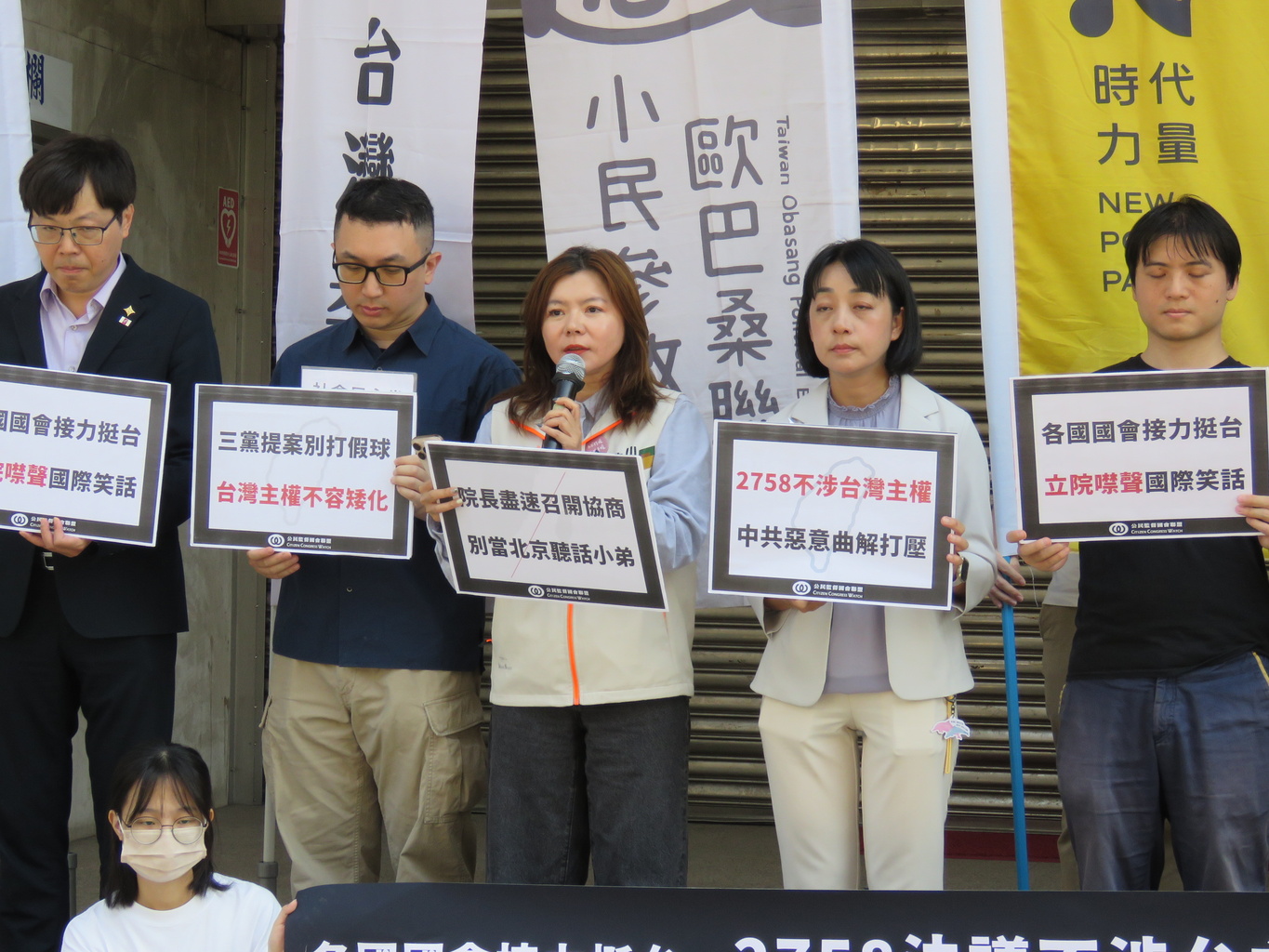 小民參政歐巴桑聯盟秘書長何語蓉則表示,1971年通過的聯合國第2758號決議,只是確認了「中國」在聯合國的代表權,並未觸及台灣的主權問題,卻被中國政府長期錯誤詮釋,聲稱它代表整個中國,包括台灣。這樣的謬誤,不只壓縮了我們的國際空間,更剝奪了我們在世界發聲的權利。我們的選手無法以「台灣」參賽,我們在全球疫情中被排除在WHO之外,我們的外交官被迫退場。我們被代表、被消音、被矮化。但值得痛心反省的是,這種矮化,不只發生在國際,更深植在我們的教育裡。我們這一代人,從小在黨國教育下成長。歷史課本裡,台灣只是附錄;地理課本標示中國省分,卻不標明台灣的主體地位;每天的升旗典禮、國歌歌詞,都在灌輸我們「我們的國家是中國」的觀念。這不只是錯誤,而是一場長期的精神殖民。這樣的教育,讓我們的孩子無法認識台灣,也無法為自己的國家發聲。國家認同變得模糊、脆弱,當外來威脅逼近時,我們只能退縮,無法挺身而出。但我們已經沒有退路。我們的總統是台灣人民選出來的,我們的軍隊保衛的是台灣的土地,我們的社會,是民主自由的。我們應該自信地對國際說出:我們是台灣,台灣是主權獨立的國家!今天我們呼籲立法院,儘速通過2758號決議聲明,向世界清楚表達:中國無權代表台灣,台灣有自己的名字,也有自己的未來。我們是媽媽。國家認同的建構不能再被忽略,孩子不能再被錯誤的歷史敘事所迷惑。我們會站出來,為了我們的孩子,為了這片我們深愛的土地,用行動捍衛台灣的名字。我們要的是一個能大聲說出自己名字的國家。我們的名字是——台灣作為民意代表機構,立法院應該堅定地捍衛台灣的國際參與權,不讓中國的錯誤解釋壓縮我們的聲音。