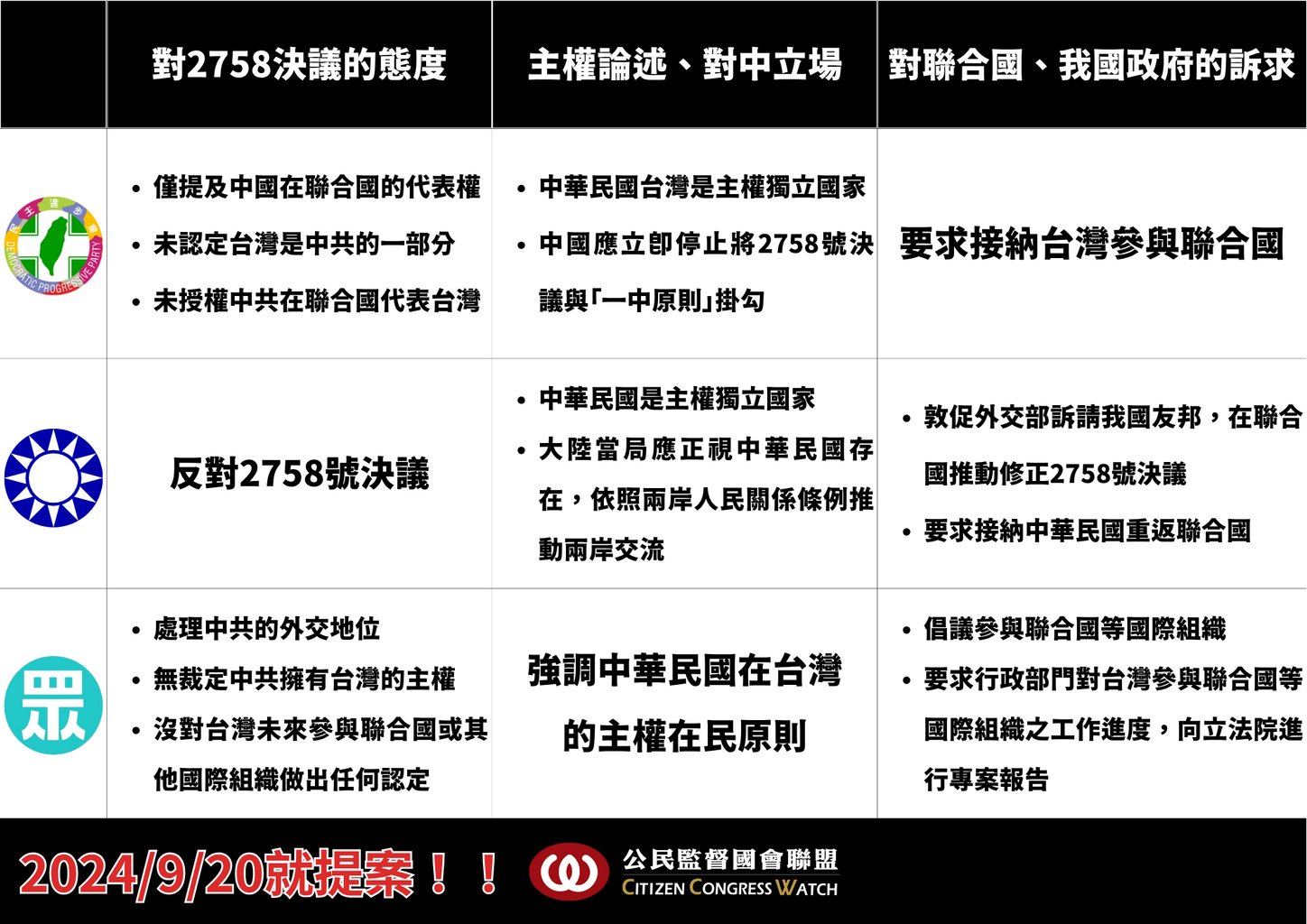 2758號決議三黨聲明版本比較表