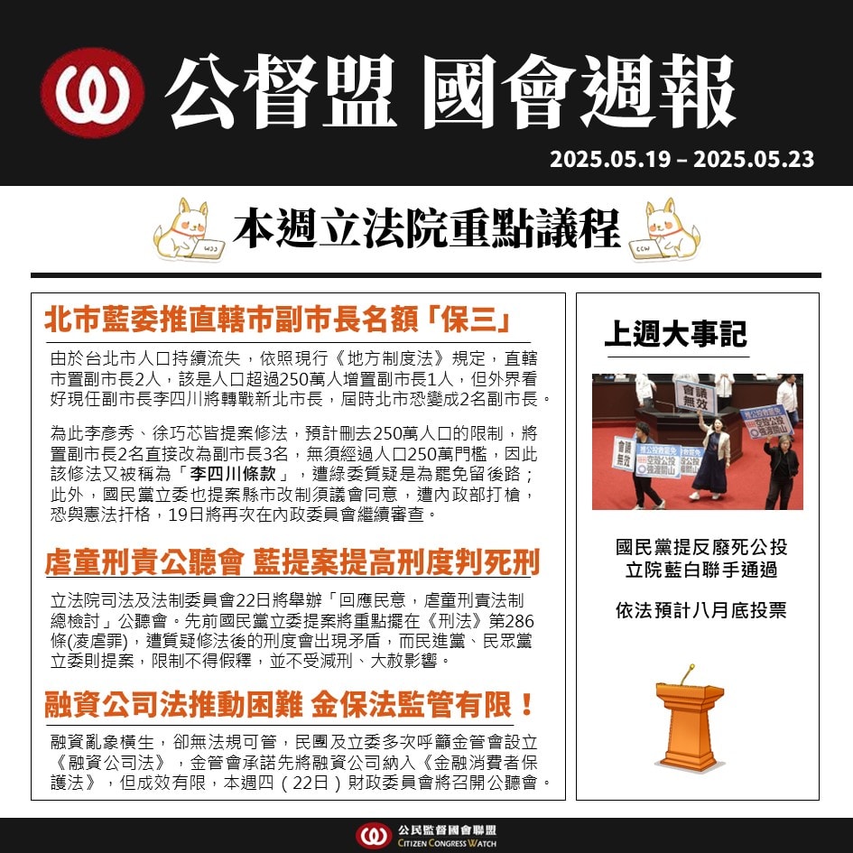 ■公督盟國會週報─阿督帶你看下週立法院做什麼?