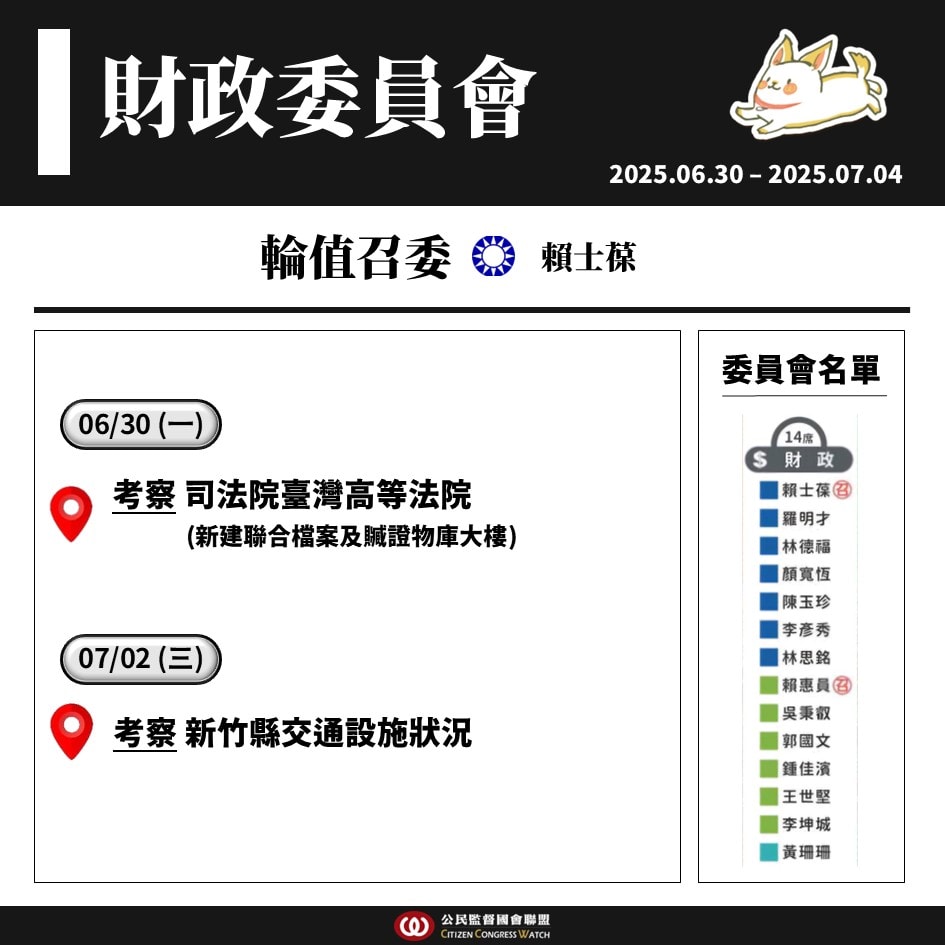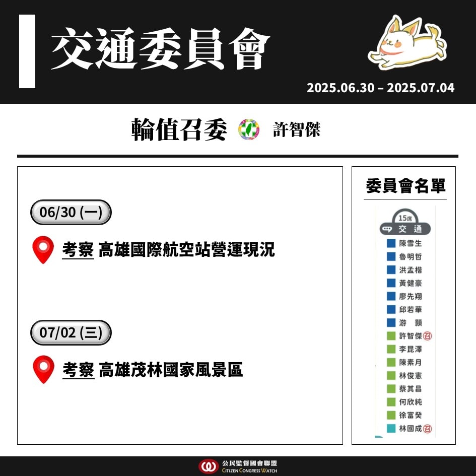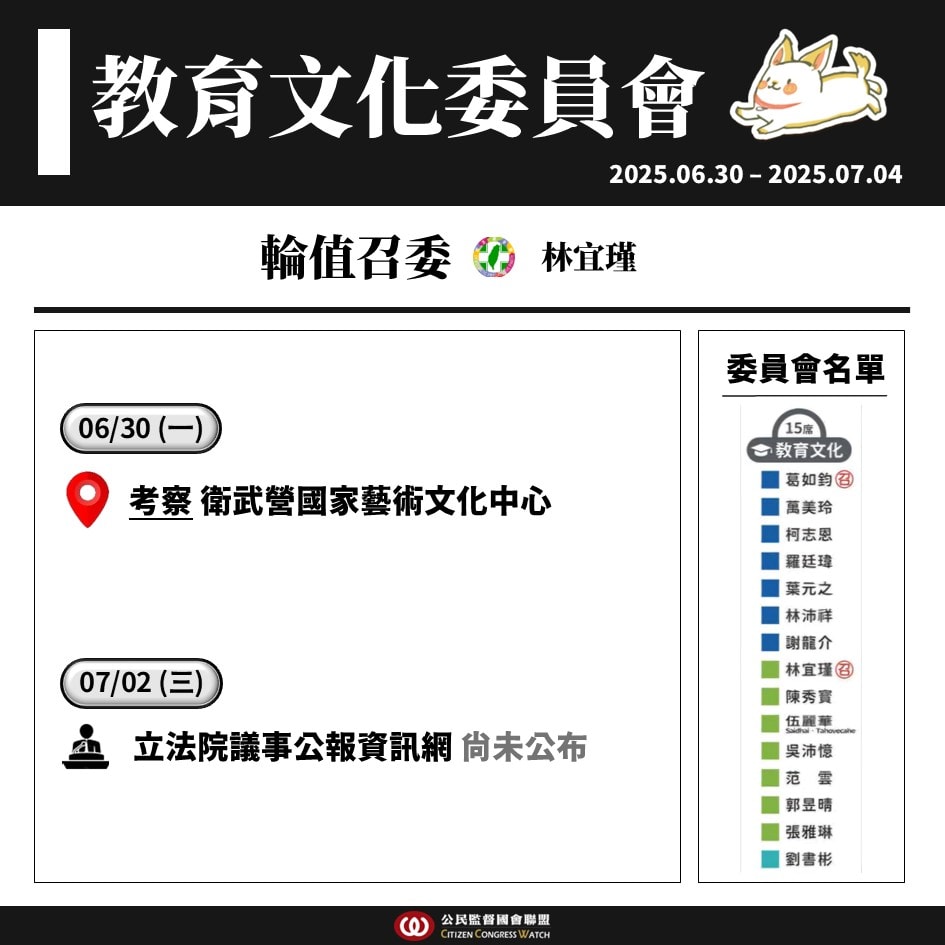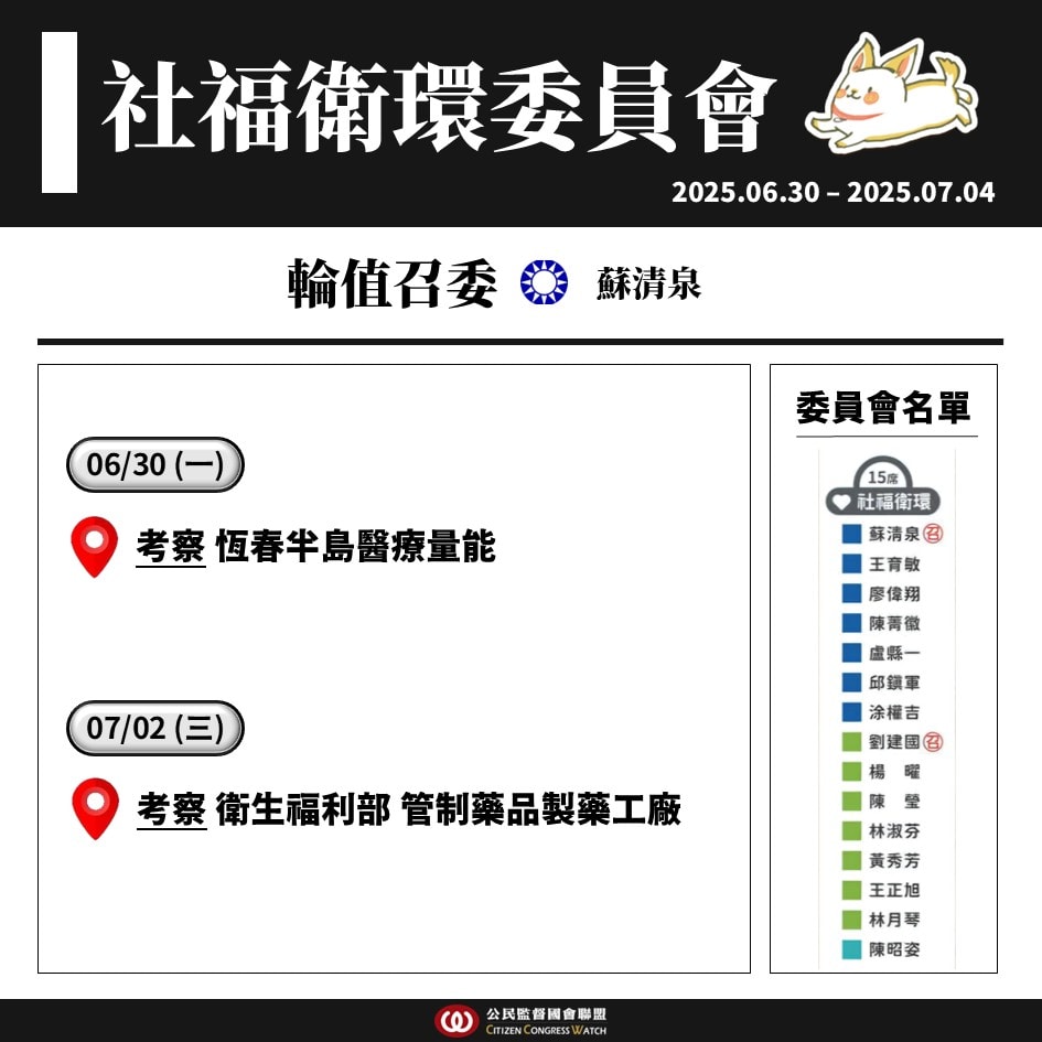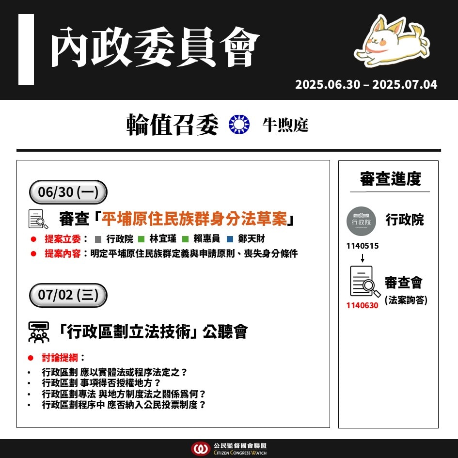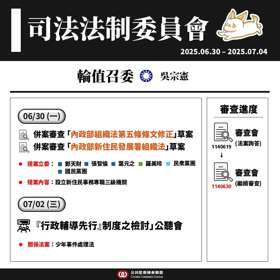 本週四(7/3)將由以下立委代表參與審查公聽會。