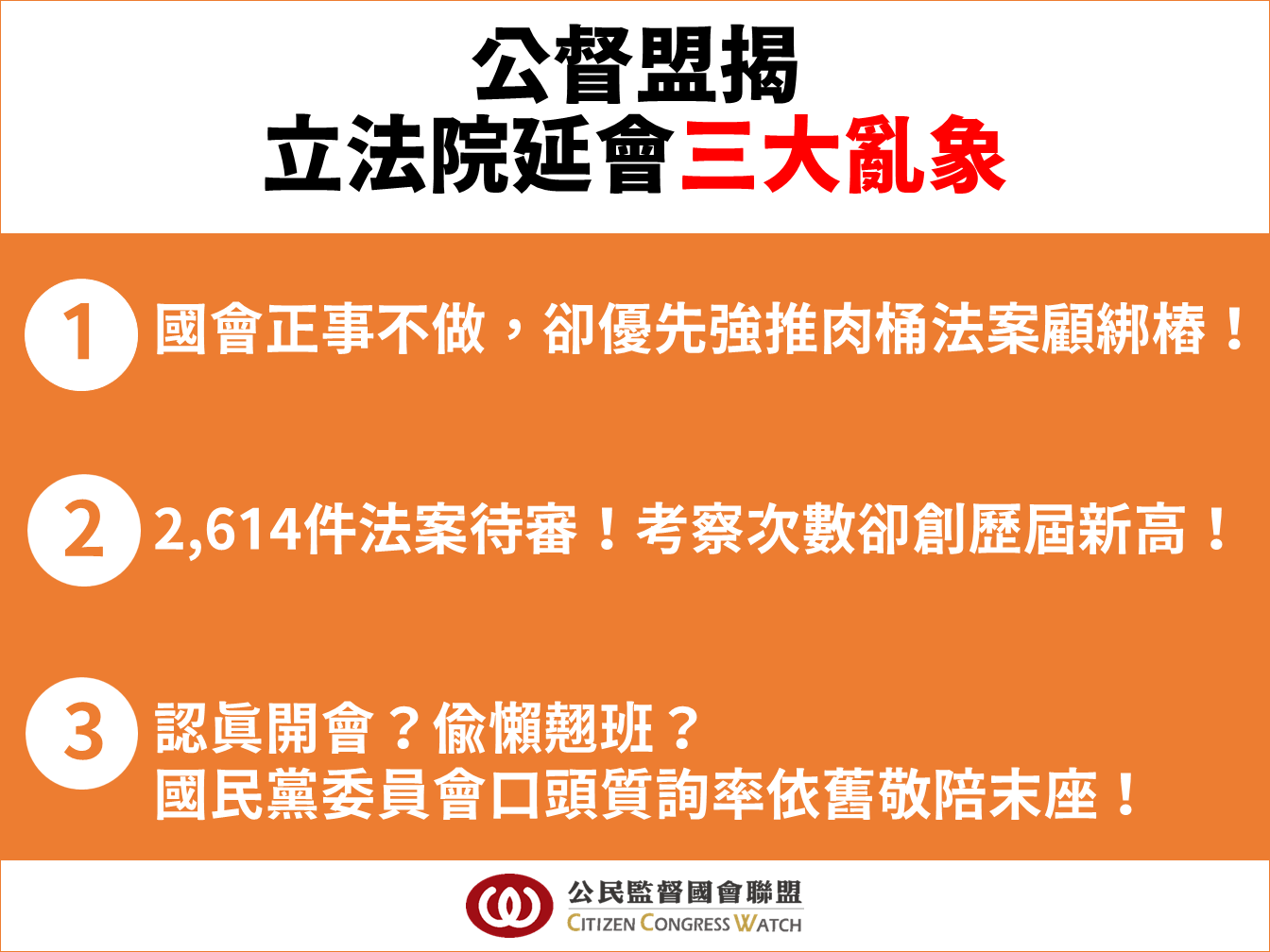 【新聞稿】公督盟揭延會三大亂象! 反對假延會,真綁樁!破壞財政紀律,惡意掏空國庫!