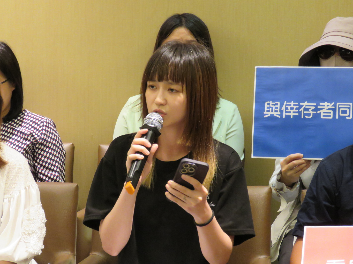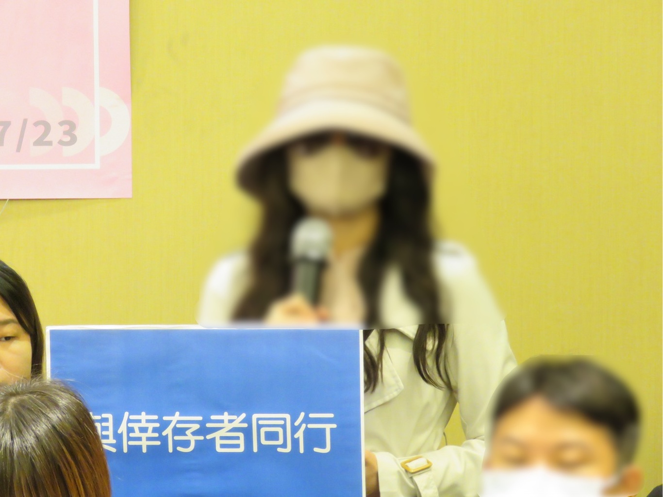 參與釋憲行動之倖存者W小姐,訴說著他的親身經歷:「自從站出來那刻起,我選擇匿名,原因是所有人的身分與安全都值得守護。匿名不是懦弱,而是為了面對創傷與傷痕,讓更多人能勇敢站出來。我們曾站在司法面前,渴望公義,卻被拒於高牆之外。今天召開記者會,是希望大法官們能聽見我們倖存者的聲音。對於仍在復原路上的你,我想說:你沒有做錯任何事,也不需要獨自承受。我們一起走,路就成了路。這不只是為了我們,更是為了未來的孩子。請和我們一起,讓真相不再被掩蓋,讓正義回到我們身上,迎向更溫暖、更公義的未來。」