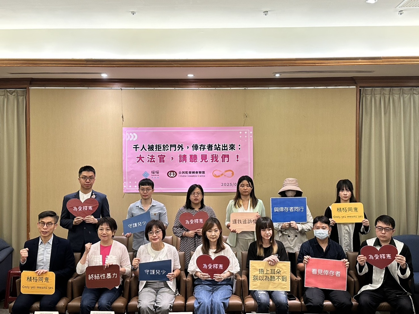 立法院的大法官人事任命投票在即,包含暖暖Sunshine協會、公民監督國會聯盟、光寰協會聯合舉辦記者會,並有多位倖存者與立法委員出席,呼籲大法官重視性暴力犯罪追訴期限制,導致兒少性侵倖存者失去司法救濟權利的問題。