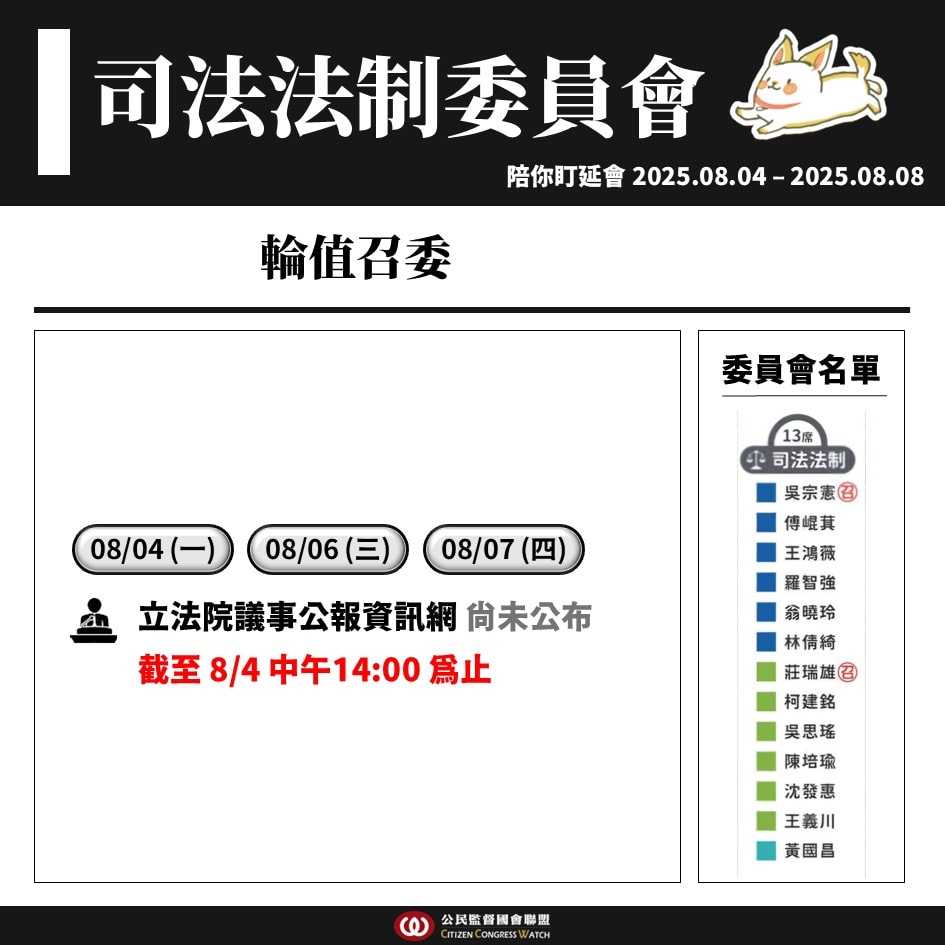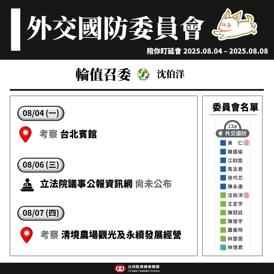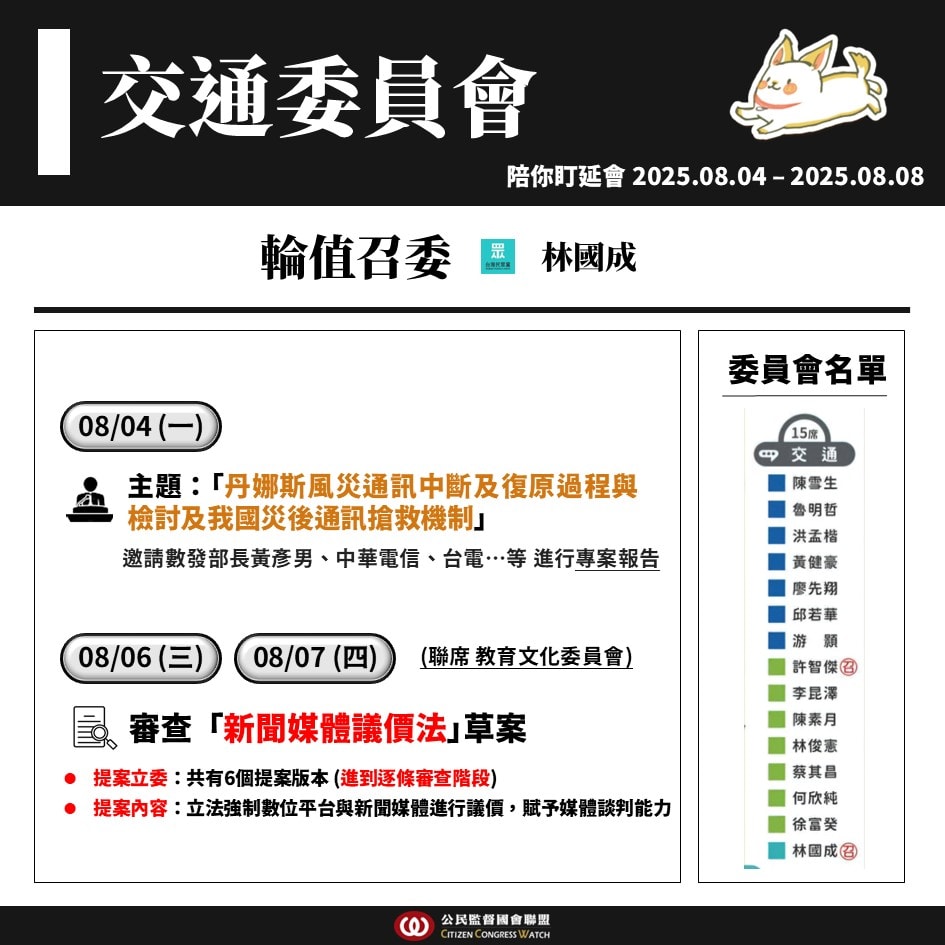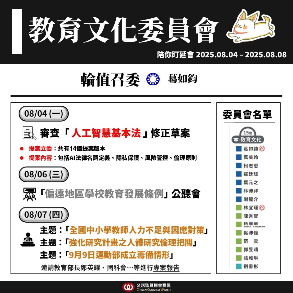 本週三、四(8/6、8/7)將聯席教育文化委員會進行審查。