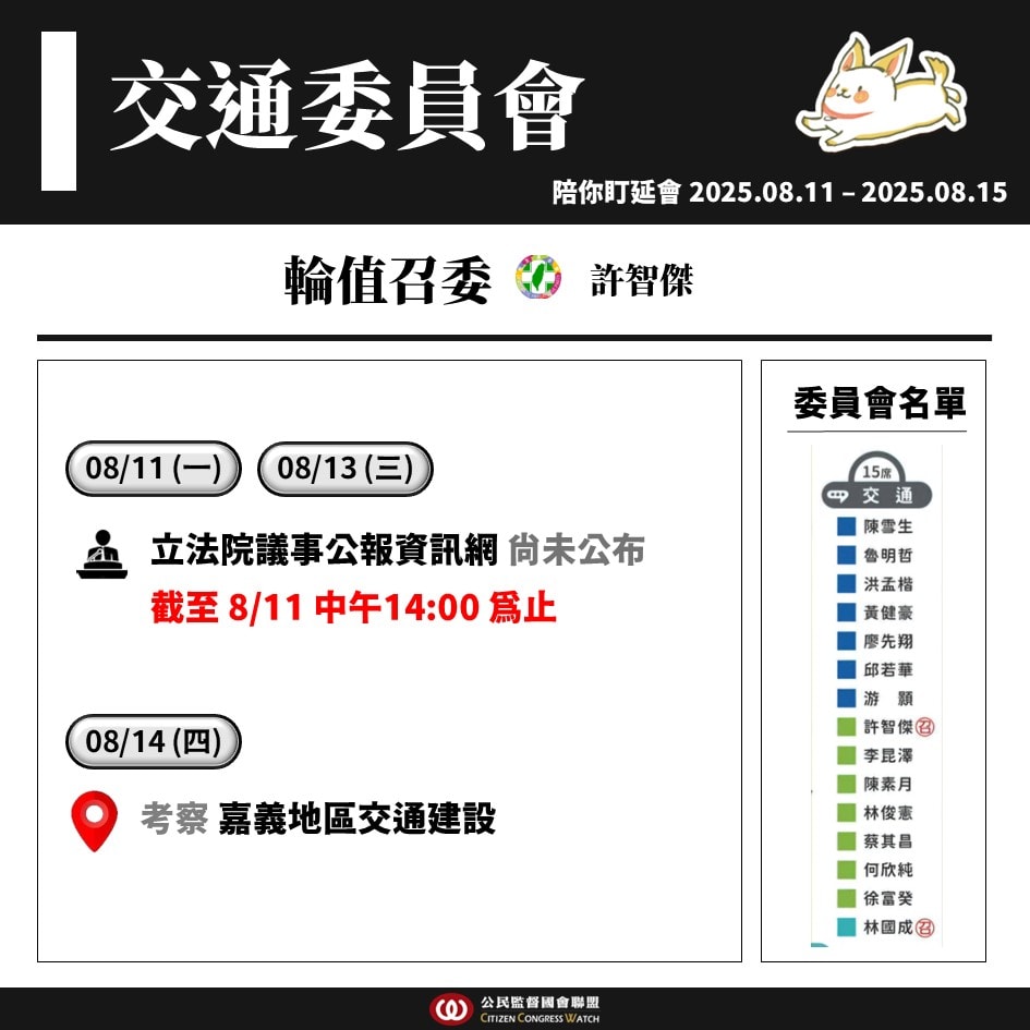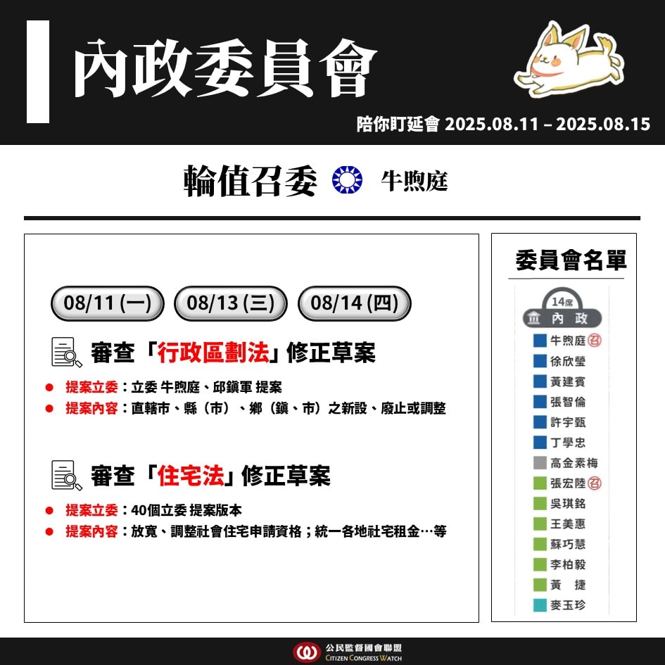 19日(下週二) 「全額撥付114年度對地方政府之一般性補助款相關事宜」並備質詢。