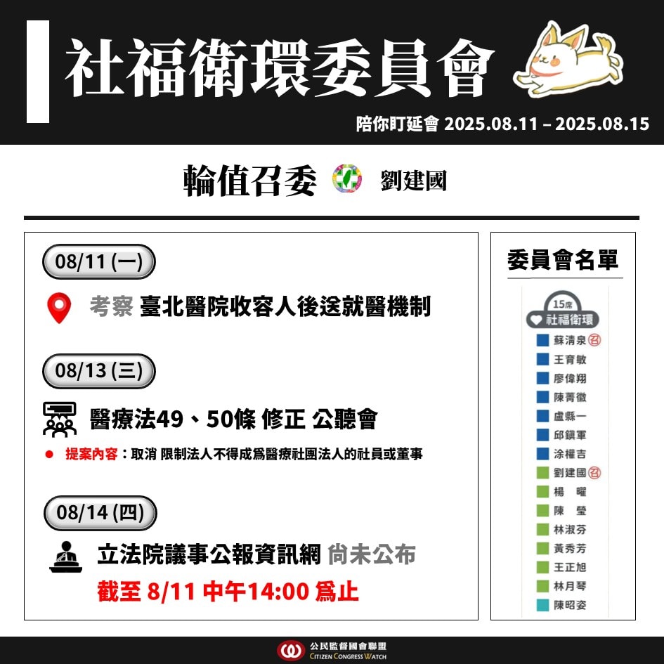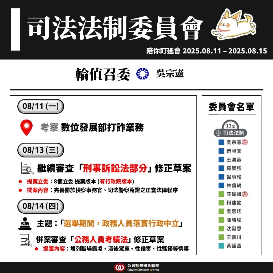 📌本週重要法案進度(委員會逐條審查/協商中)
