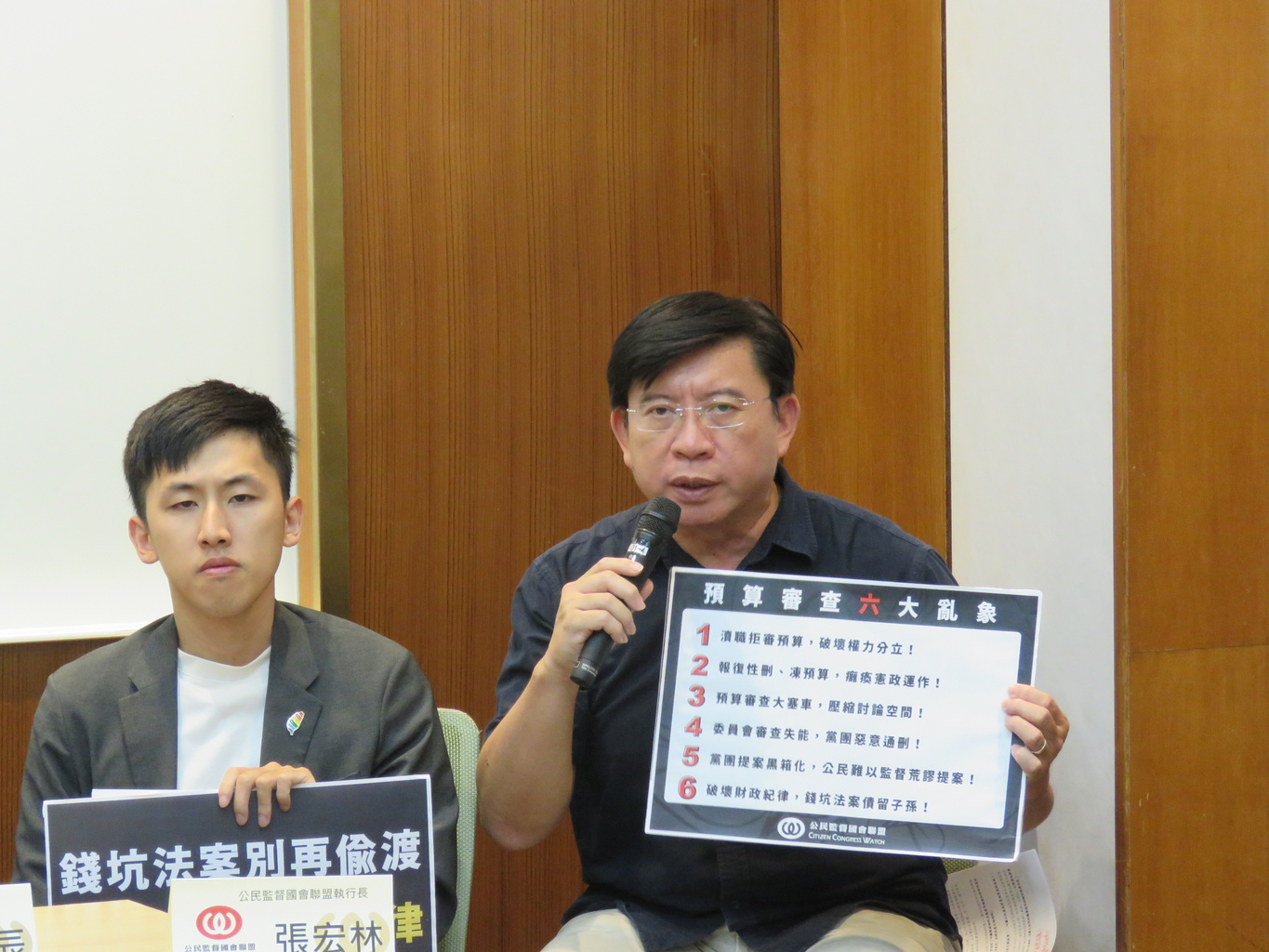 公督盟執行長張宏林表示:「按照《預算法》第51條規定,中央政府總預算案應於會計年度開始一個月前由立法院議決(也就是十一月底),以便各機關能有充裕事前準備,於隔年執行各項施政計畫。然而,今天已經是九月底,立法院還沒動起來,難道是想讓去年總預算審查之亂重演嗎?」
