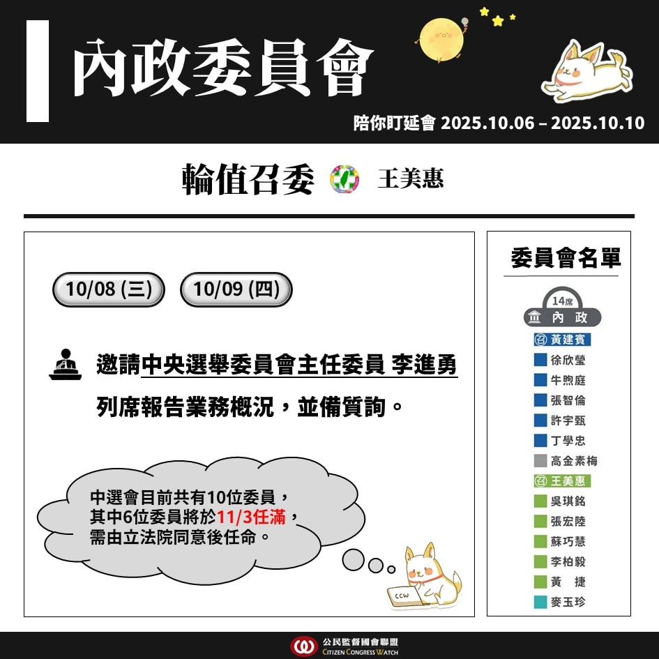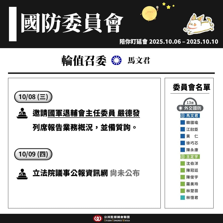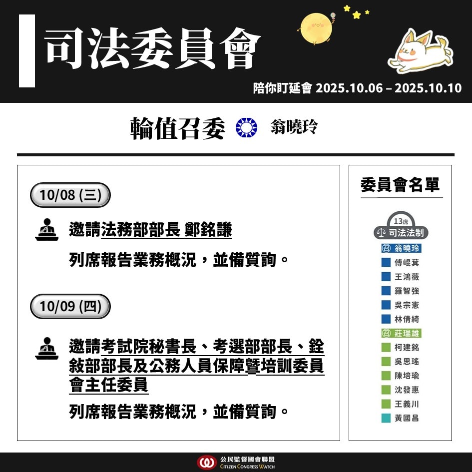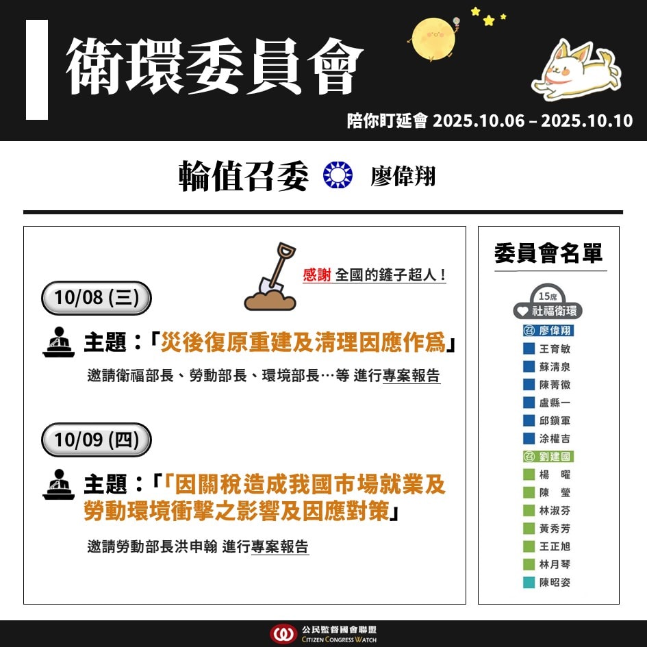 更不用說經濟委員會負責監督的部會,和美國對台關稅,花蓮光復洪災重建都是社會高度關注之議題,呼籲楊瓊瓔召委會期中放下旅行包,優先處理民生法案和預算案