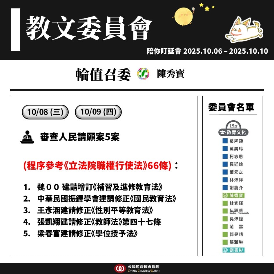 教育文化:⚪️劉書彬/🟢陳秀寳