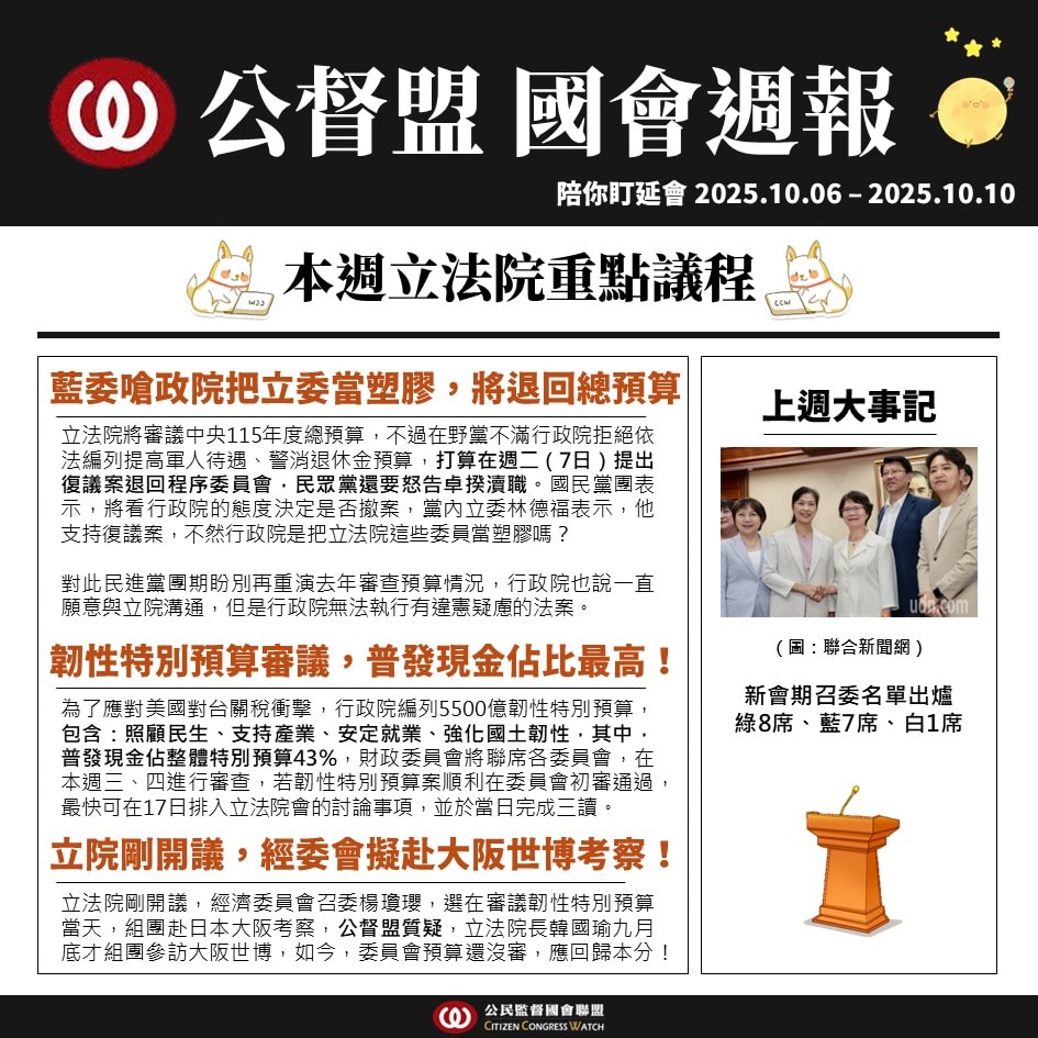 ■公督盟國會週報─第十一屆第四會期(預算會期)