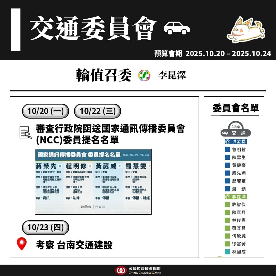 本週交通委員會聯席,教育文化委員會進行審查,被提名人中,一名國民黨籍、三名無黨籍。