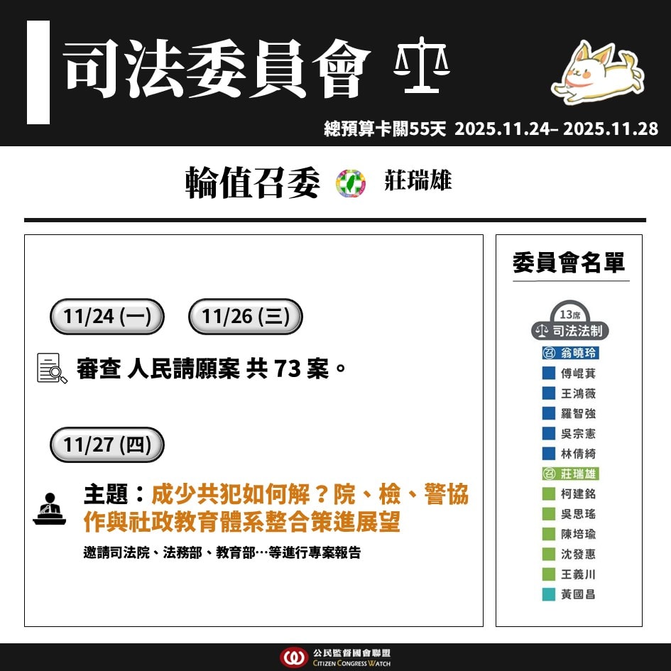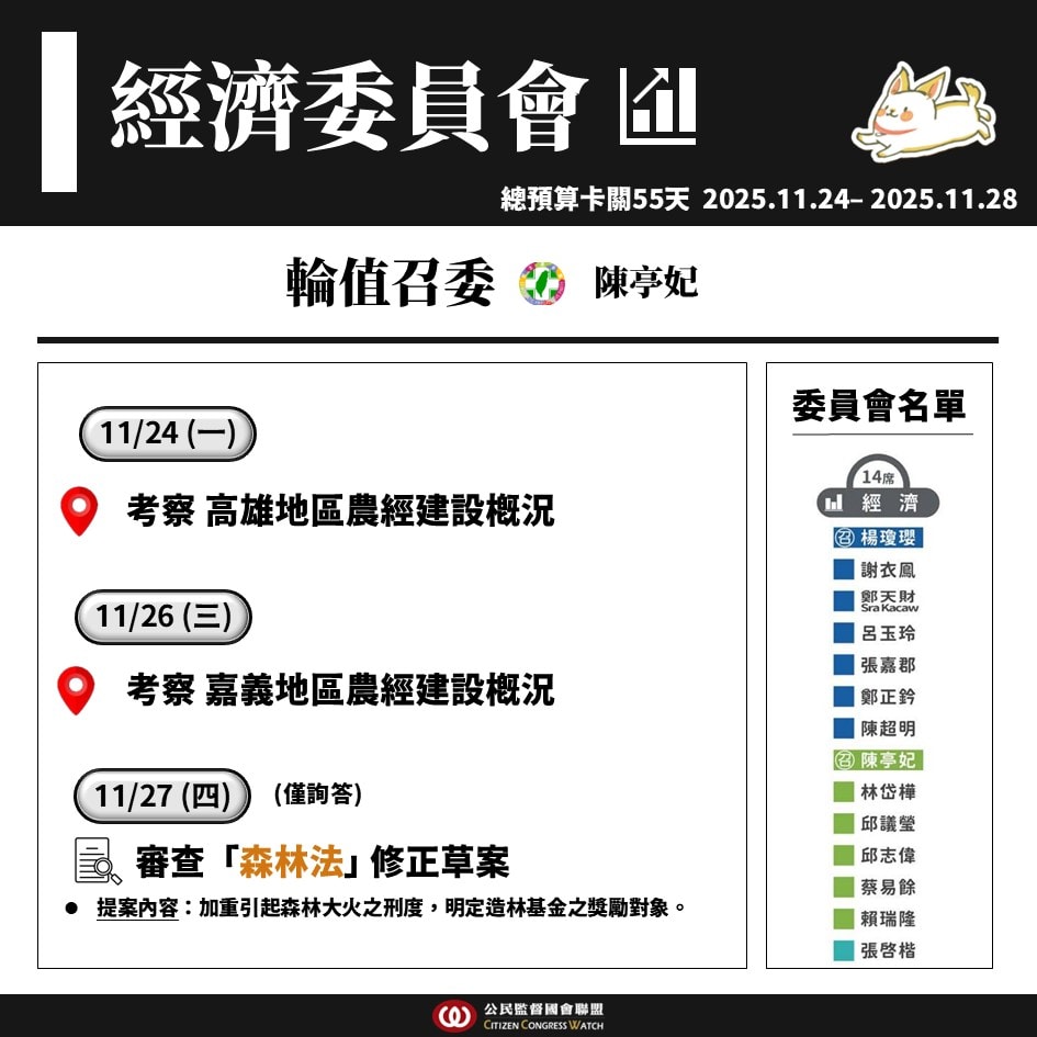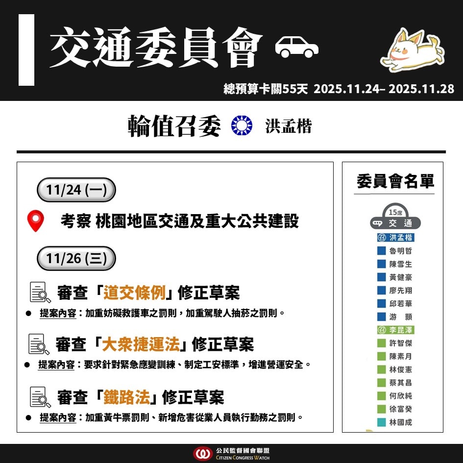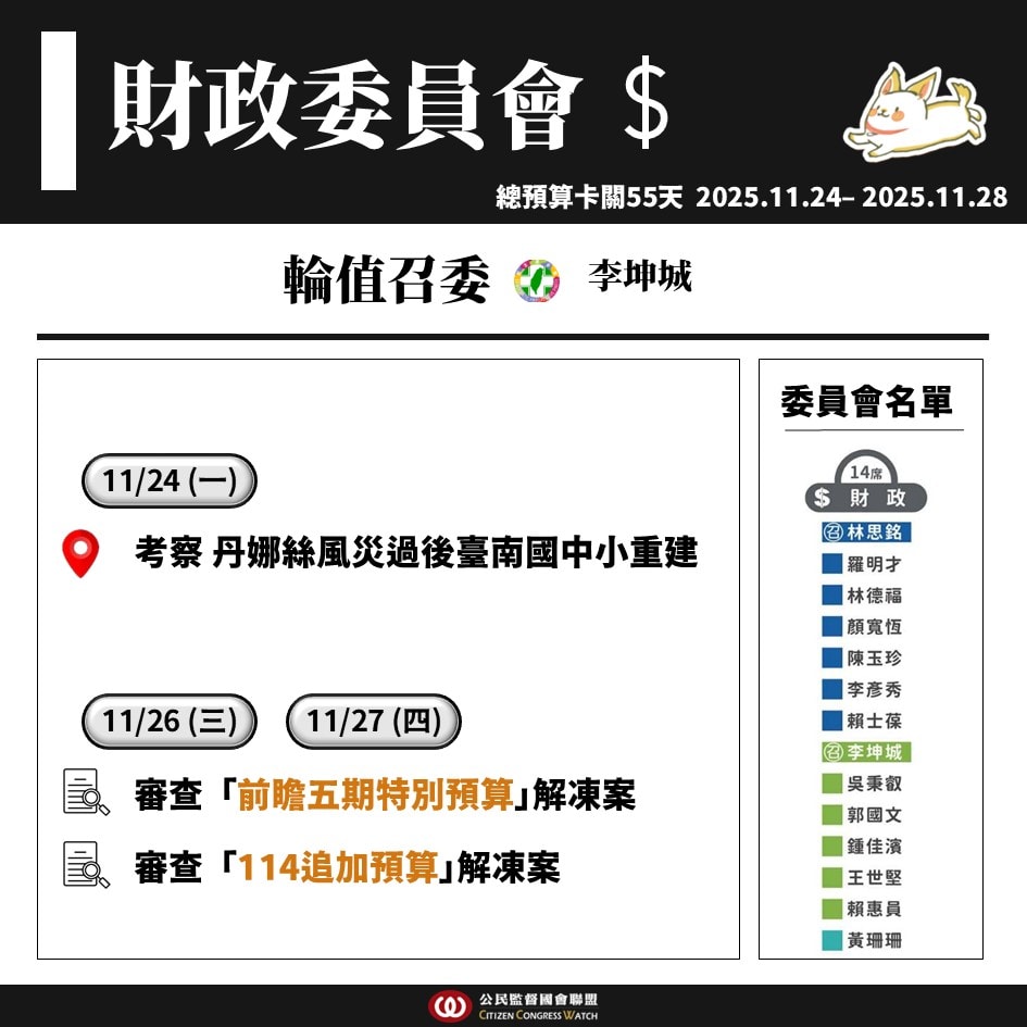 【國會週報】11/24–11/28立法院議程