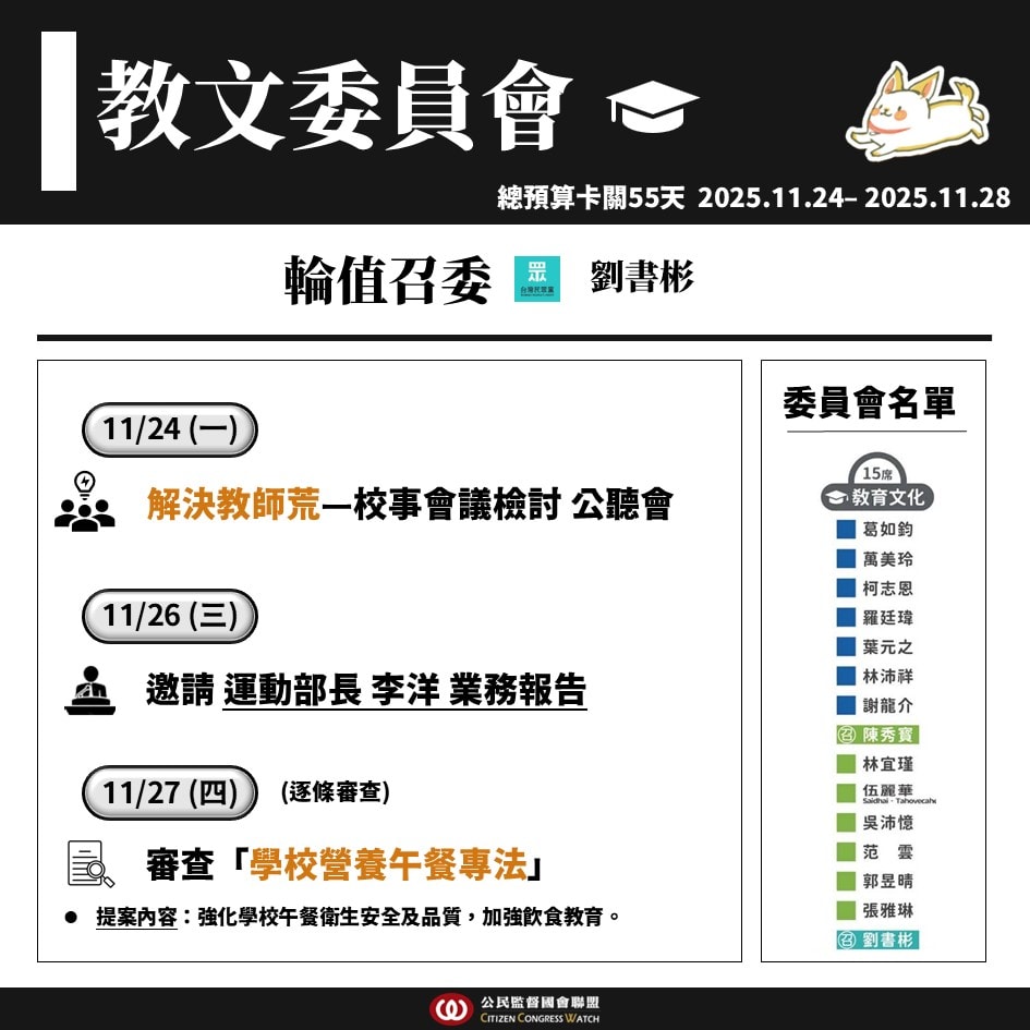 🏫 「營養午餐專法」本週逐條,因財劃法延宕