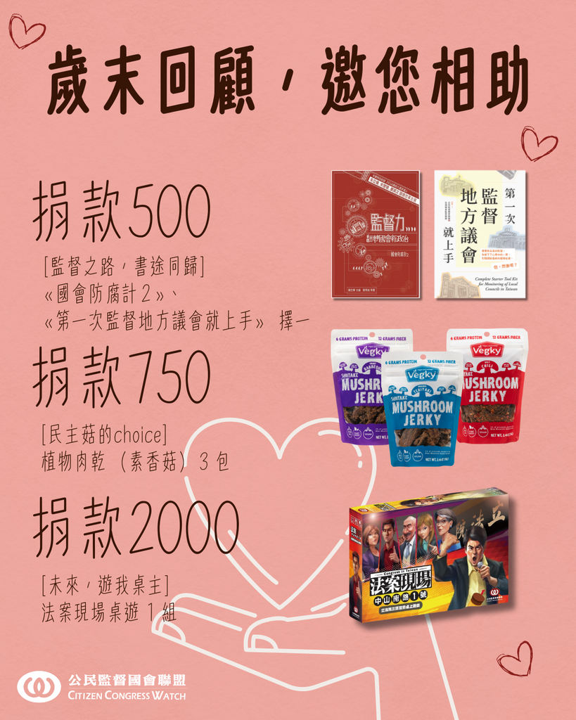 今年底,我們遭遇到史上躺最久的總預算案,立法院遲遲不動作恐造成全民公益的潛在損害!此時,我們也很需要公民,持續成為我們監督國會的後盾。🙌🙌🙌