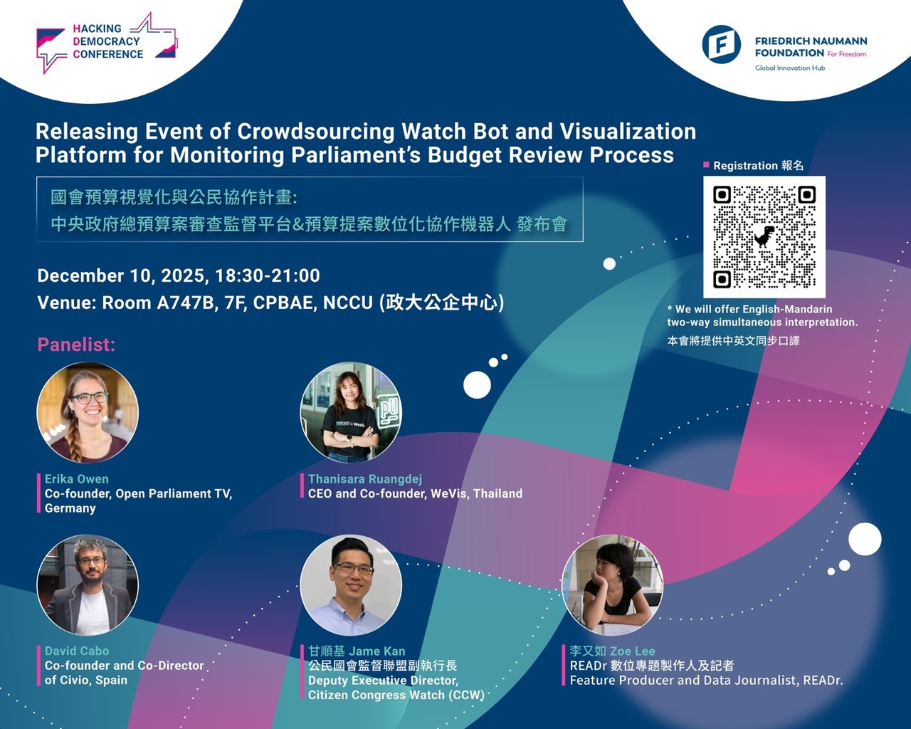 本次活動中,我們不僅發布此平台與機器人,更將邀請全球實務經驗工作者分享提升議會透明度及政府預算審查流程的專案經驗。🌐誠摯期待您的參與!