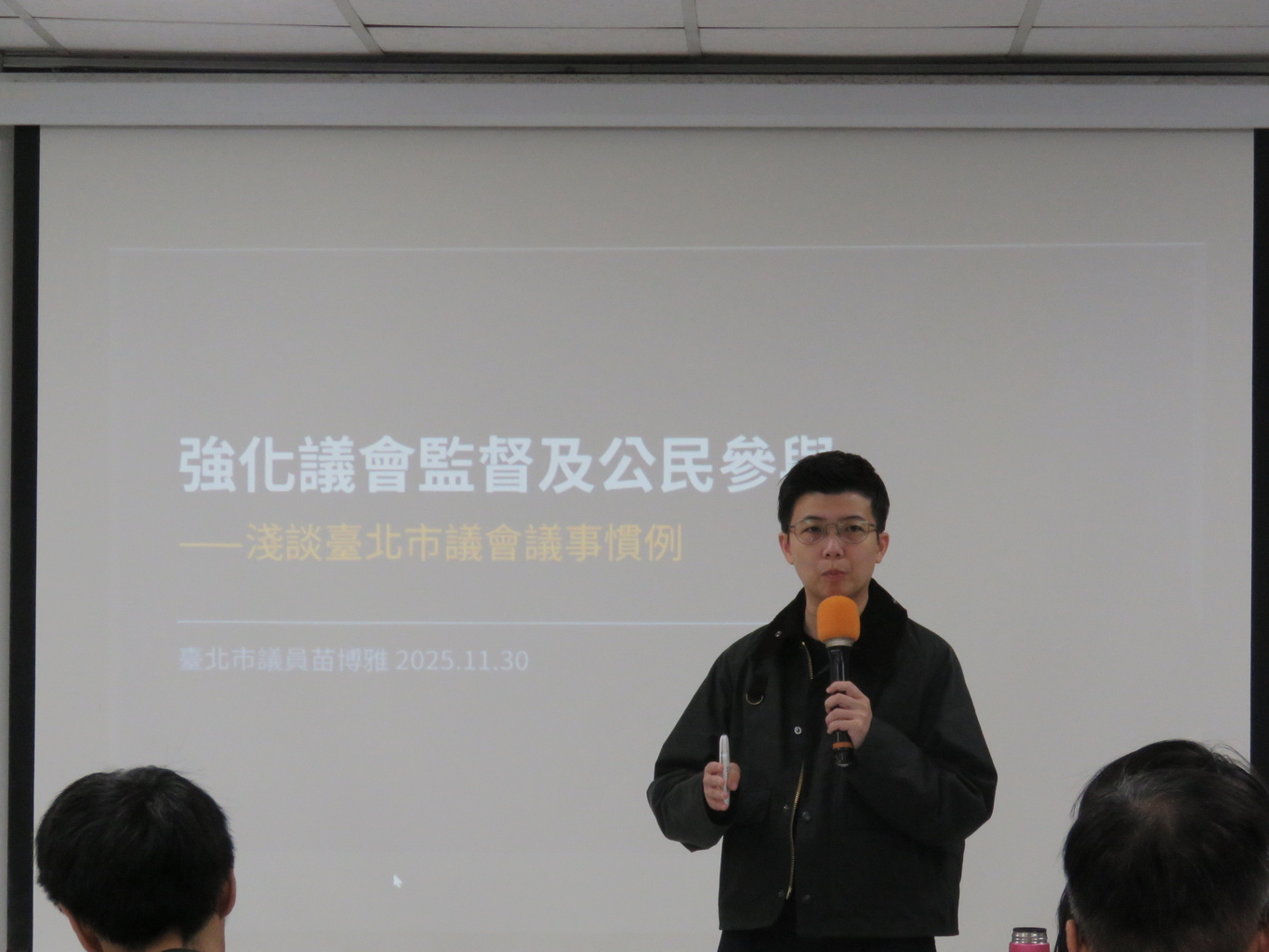 台北市議員苗博雅也現身分享,不同於立法院高度的政黨對立,台北市議會受議案數量、議程時間及出席人數等因素,長期採「共識決」而非表決制。如此運作模式,讓議員不必被政黨立場過度綁架,更能以政策理念為基礎展開合作,也使小黨議員擁有更多替民眾發聲、爭取權益的空間。