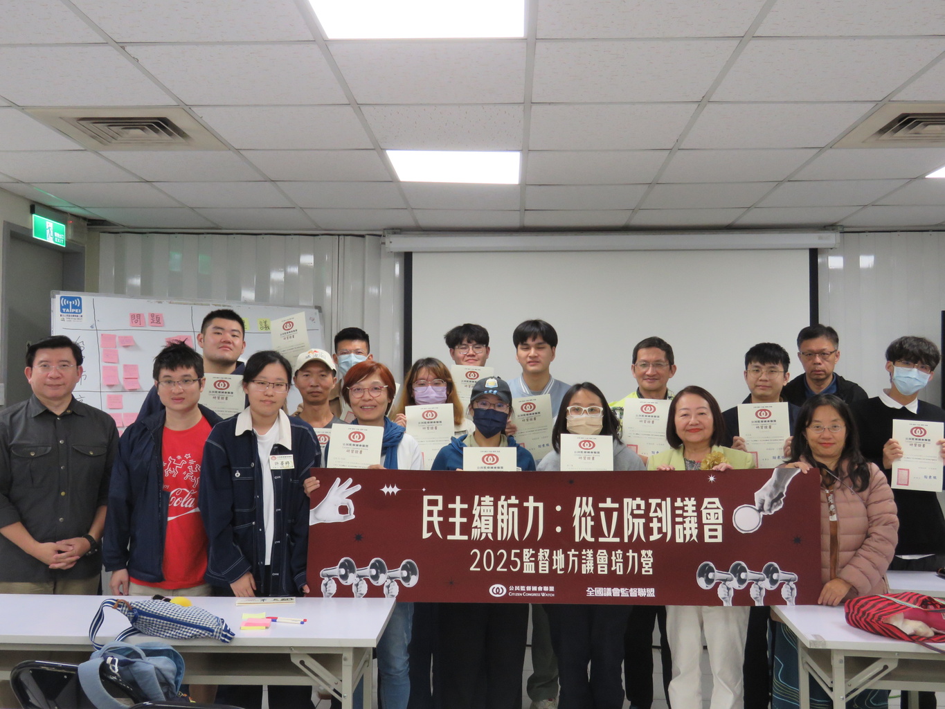 全督盟深信,民主不僅止於投票,更在於投票之後的持續參與。我們期盼藉由每次的培力營,支持有志投入監督地方議會的公民夥伴,傳承監督經驗與方法,引導公民踏入議會監督的行列,共同實現「全台各縣市皆有議會監督團體」的願景,進一步強化台灣民主的韌性。期待公民參與公共事務,攜手描繪議會改革的下一步。