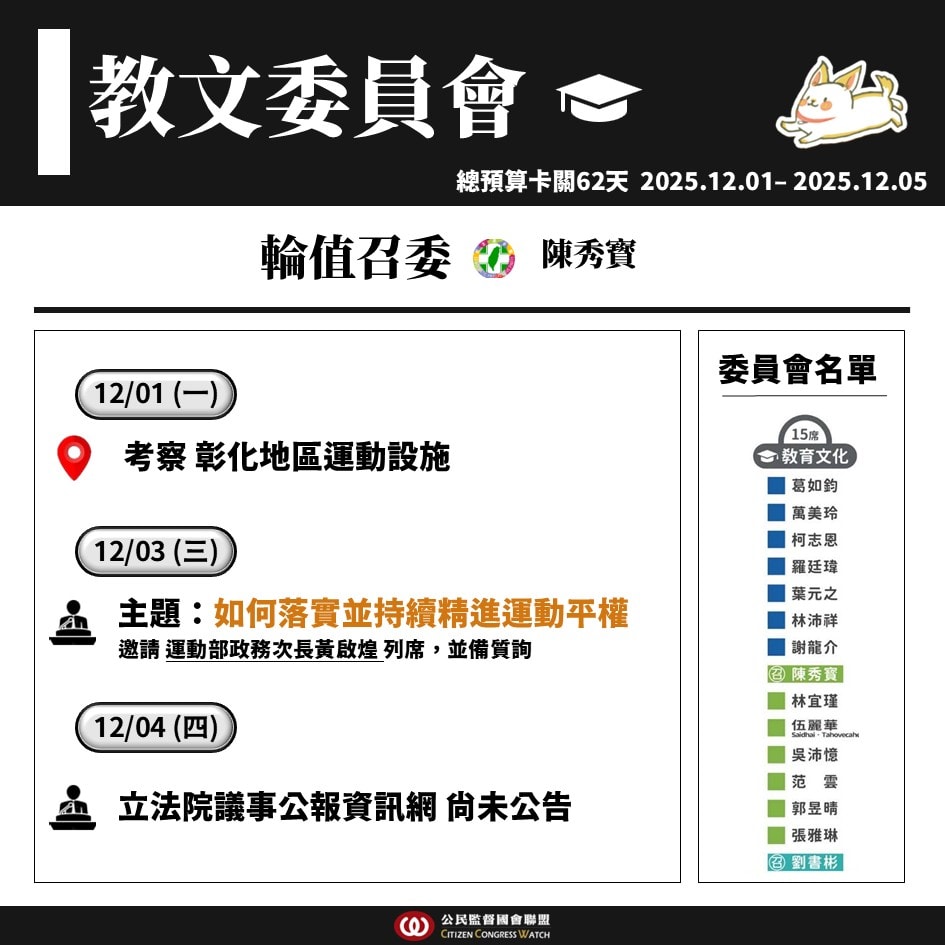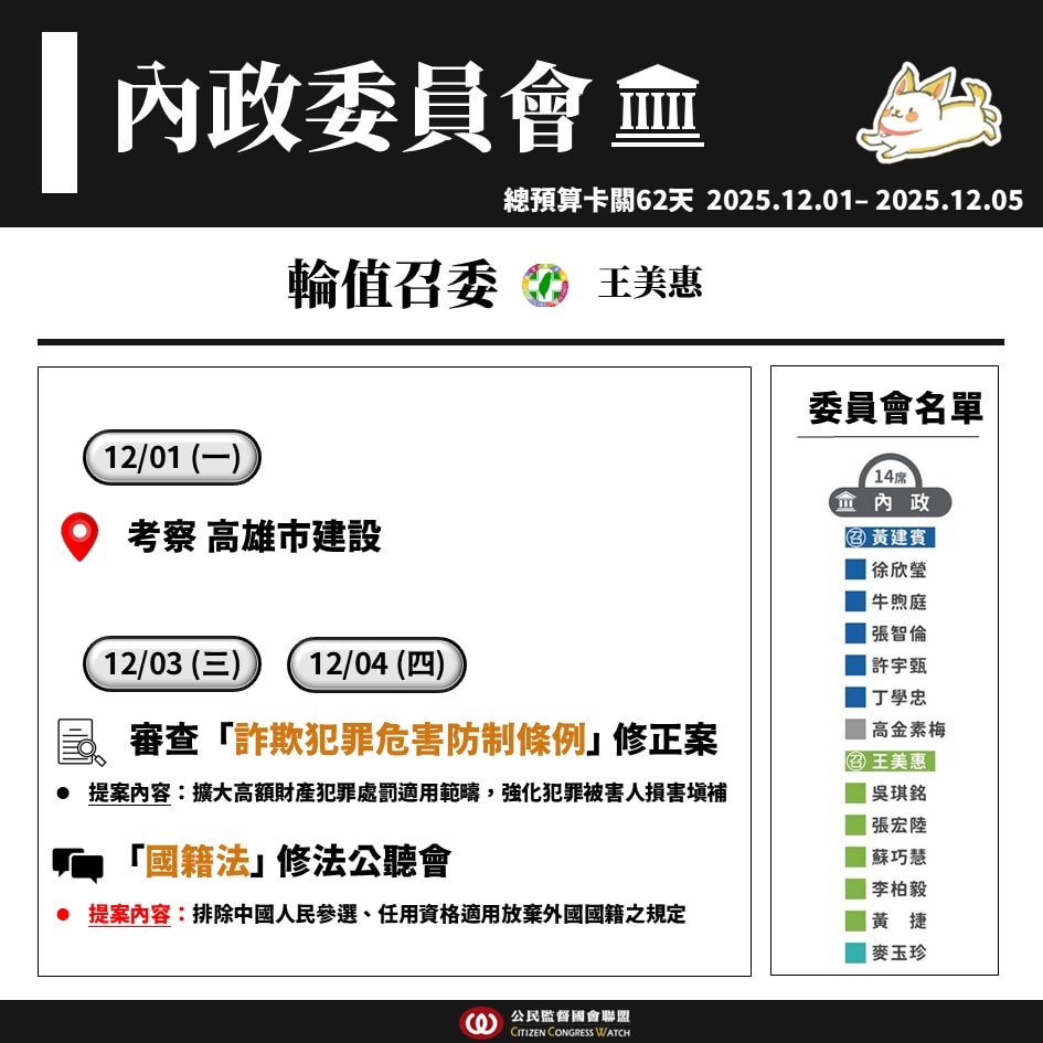 ■公督盟國會週報—第十一屆第四會期(預算會期)
