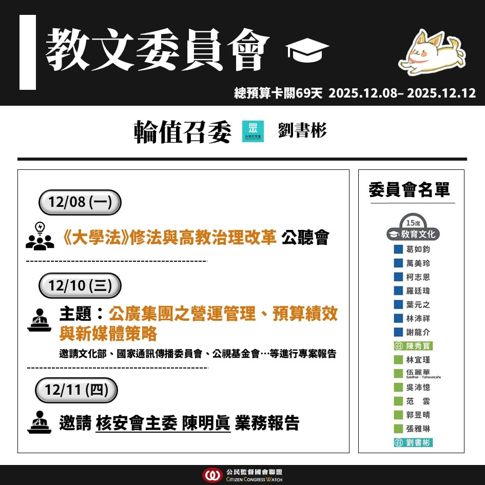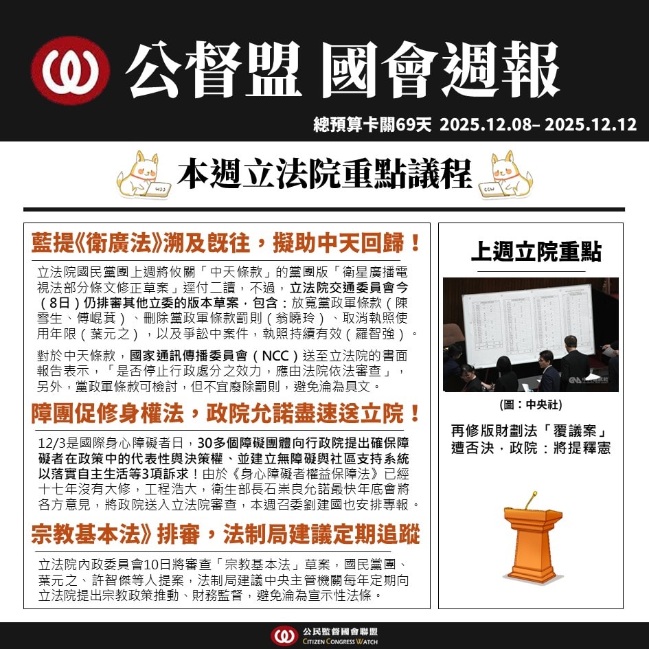 ■公督盟國會週報—第十一屆第四會期(預算會期)