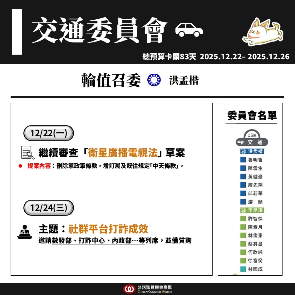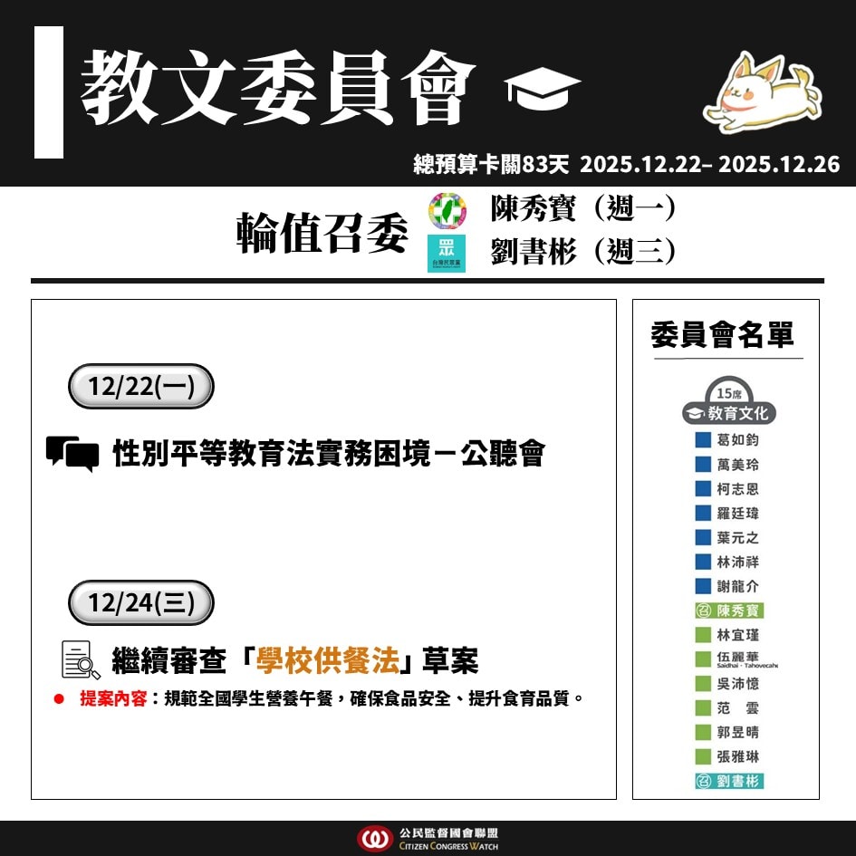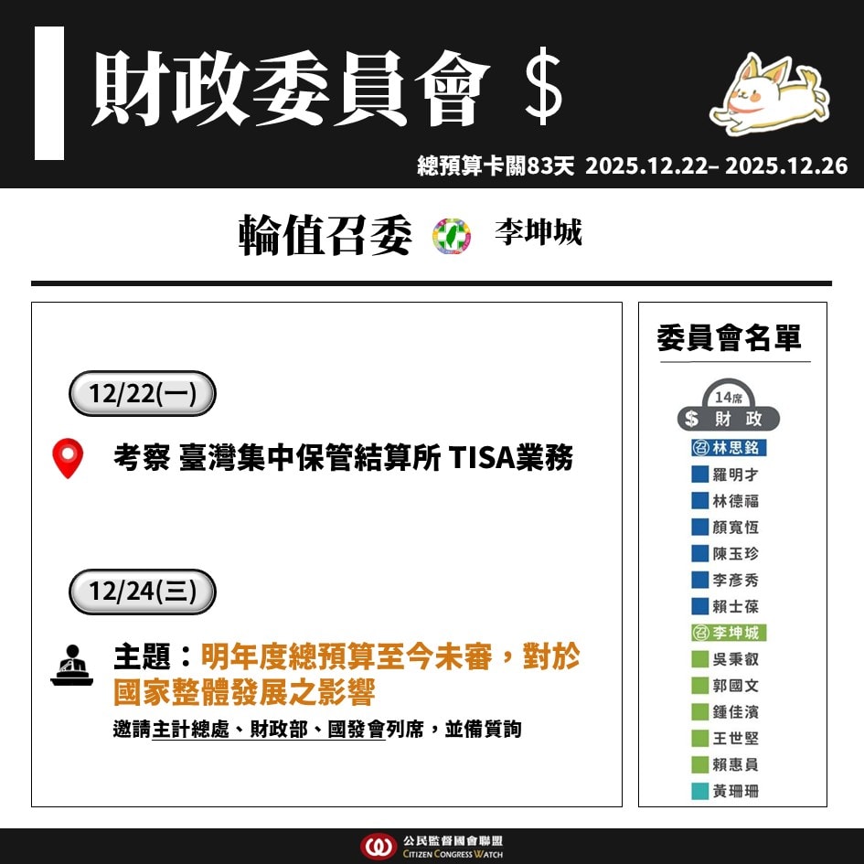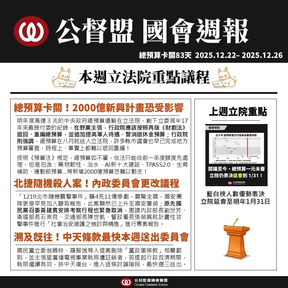 ■公督盟國會週報—第十一屆第四會期(預算會期)