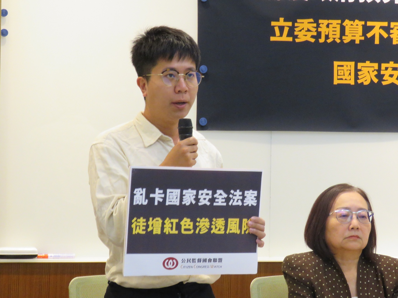 公督盟常務監事林美娜強調:「本屆立法院,從程序委員會就開始違法『卡』住各項國家政策,在野黨多次違法將不順眼的法案『暫緩列案』,根據《立法院程序委員會組織規程》,明確規定程序委員會僅能『形式審查』,過去八年也幾乎沒有惡意擋案的情形,不過過去一年多,立院卻做出最壞示範,違法阻擋上百案,從立委赴中揭露法案、NCC人事案、政院版《財劃法》、中央政府總預算,以及封殺1.25兆元的國防特別預算,將程序委員會作為太上委員會,破壞民主議事程序!」