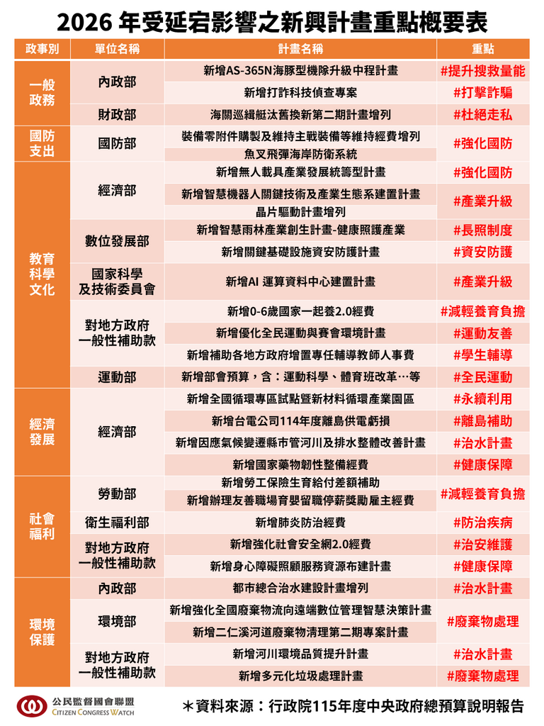 4. 全民共同關注,逾2000億新興民生計畫恐停擺,勿讓政治操作犧牲公共利益!