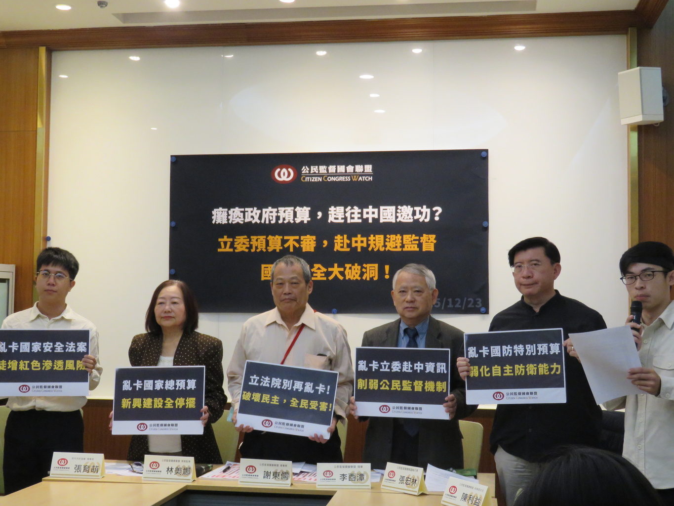 因此,公民監督國會聯盟(公督盟),今(23)日將召開記者會,呼籲立法院正視制度警訊,立即補救預算審查與立委赴中資訊揭露的雙重失能,避免國會失職成為常態,全面卡住政府正常運作!