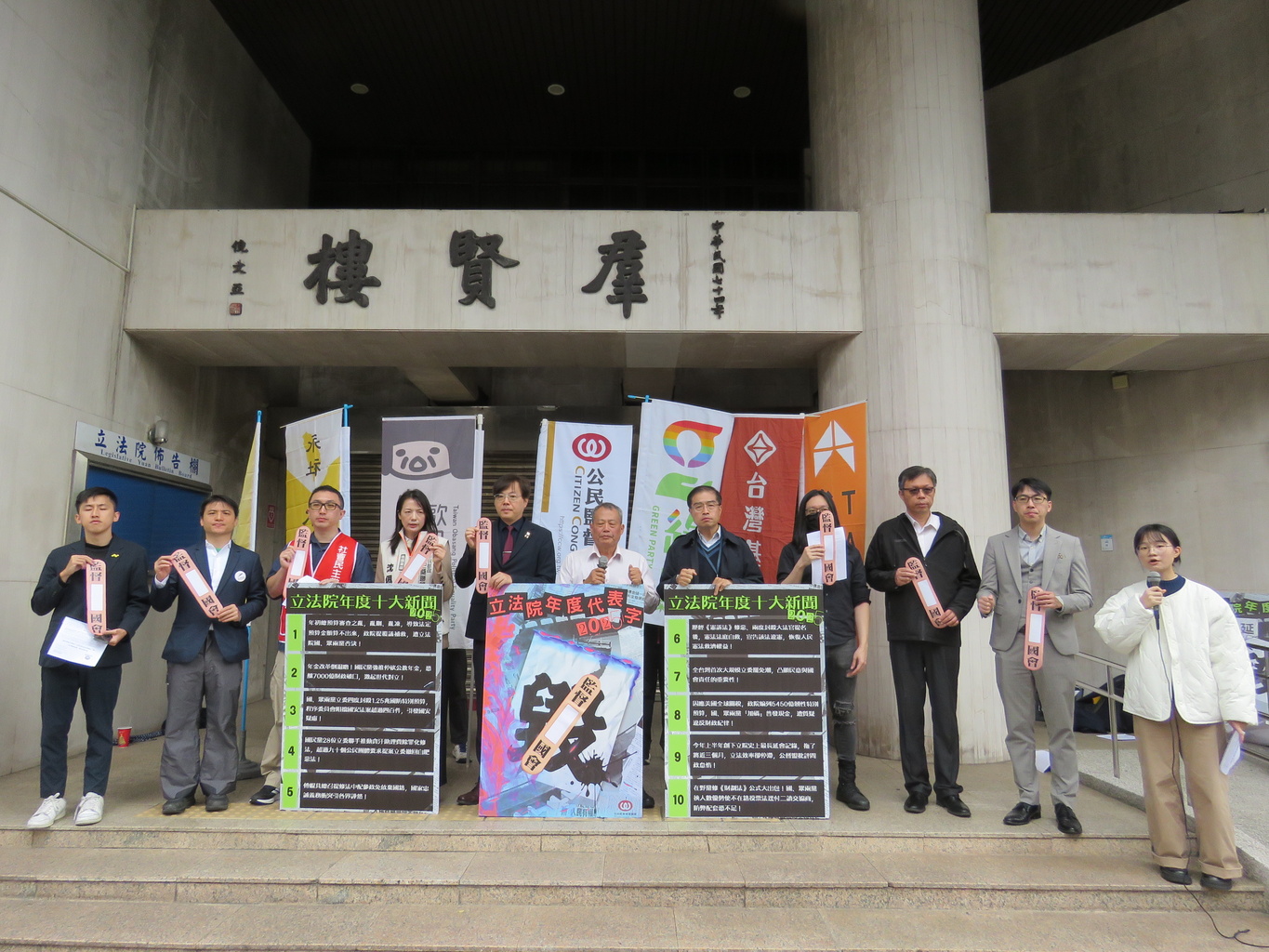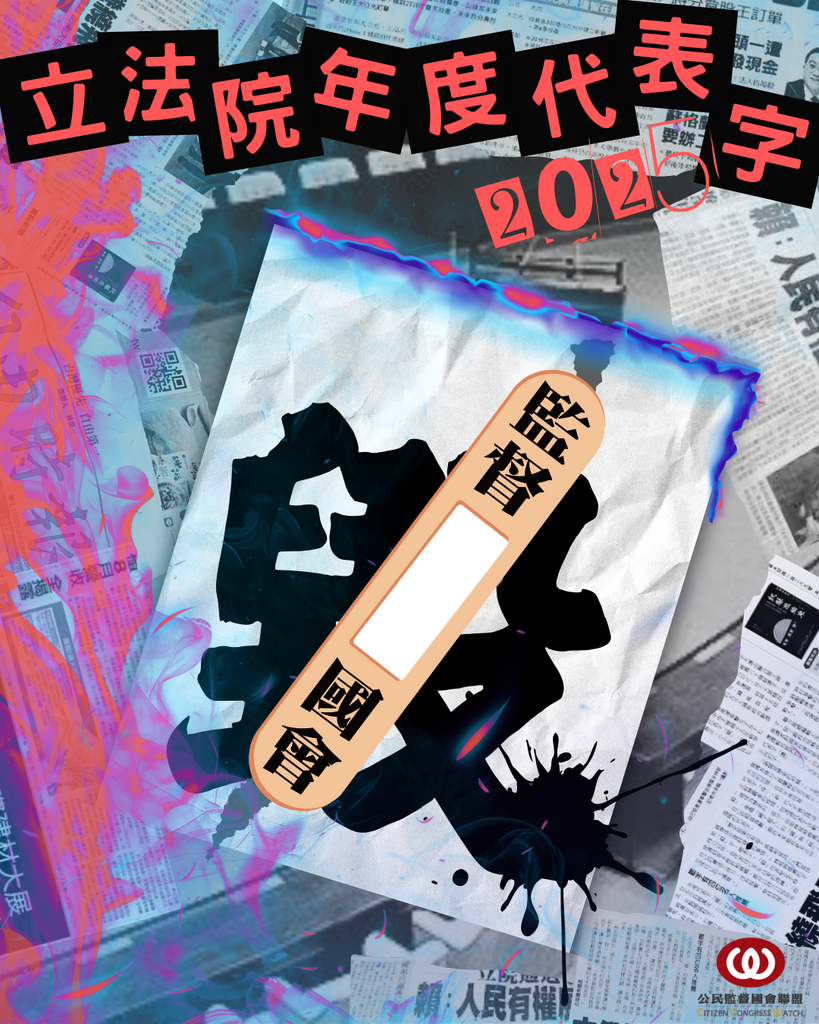 回顧今年在內政紛擾與外部壓力交織之下,本屆立法院的整體運作,已成為攸關台灣民主韌性的關鍵一環;因此,公民監督國會聯盟(公督盟)邀集上百名公民票選,並於29日公布立法院年度代表字和十大新聞,期望能藉由公民監督促進立法院持續進步!