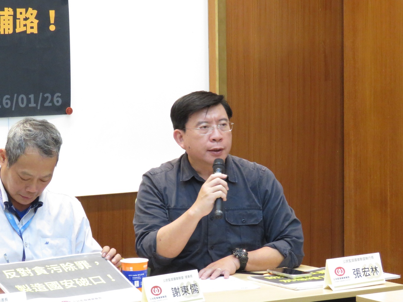 張宏林更直接點名提案立委牛煦庭:「請不要成為國民黨詐騙集團的車手!並且嚴正呼籲,國民黨有良心的立委們盡速回頭是岸,民眾黨立委不要態度曖昧,與國民黨狼狽為奸,請站出來反對貪汙除罪修法,展現新政治精神,切勿助紂為虐,成為我國民主倒退的罪人與貪污除罪的共犯!」