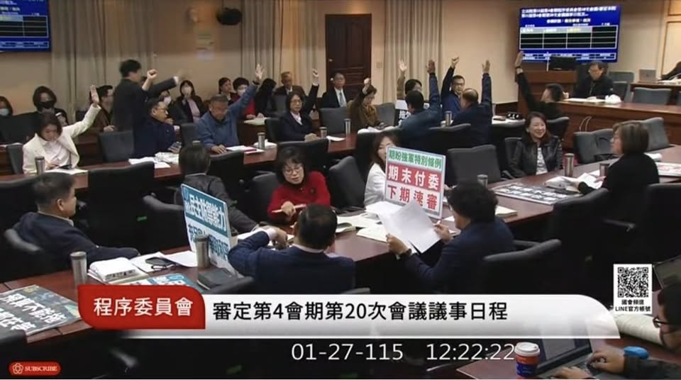 立法院今(27)日召開程序委員會,審定30日本會期最後一次院會議程