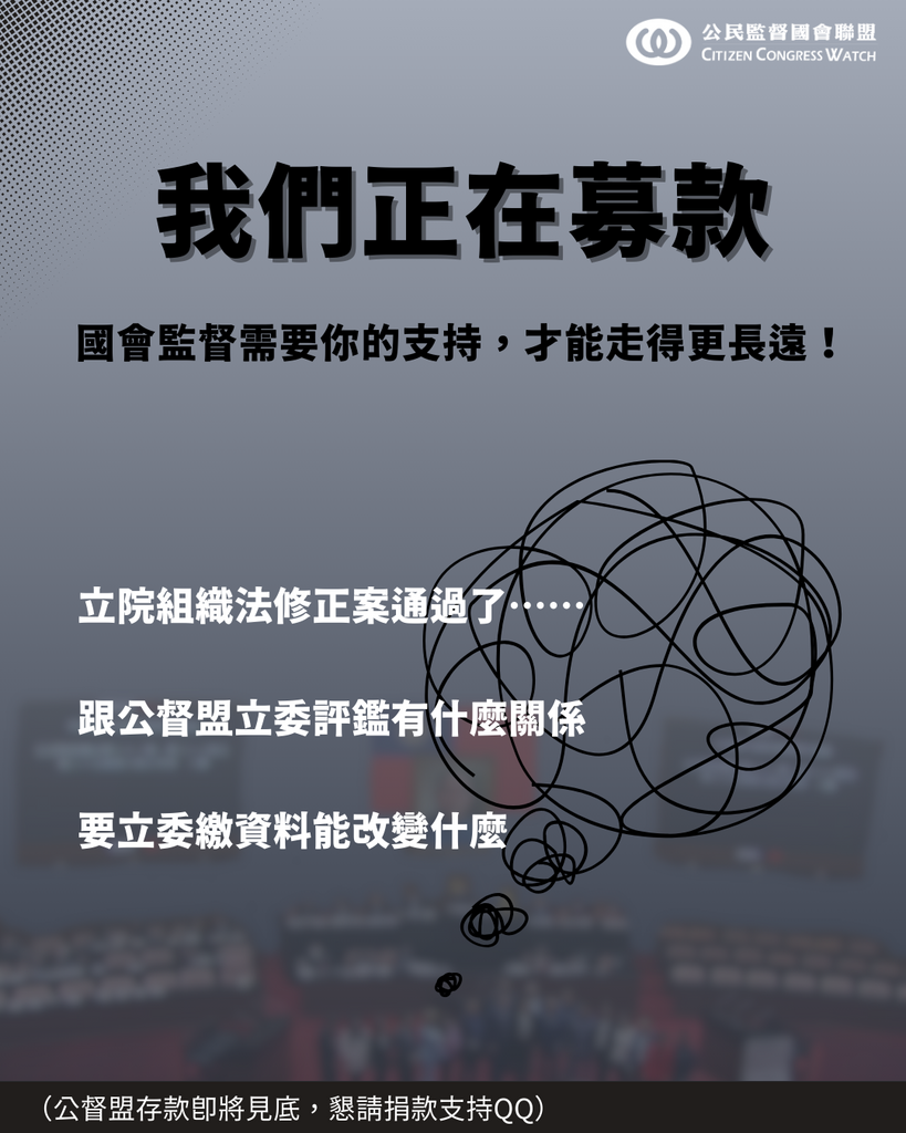 【💪我們正在募款,國會監督需要公民朋友的力量!】