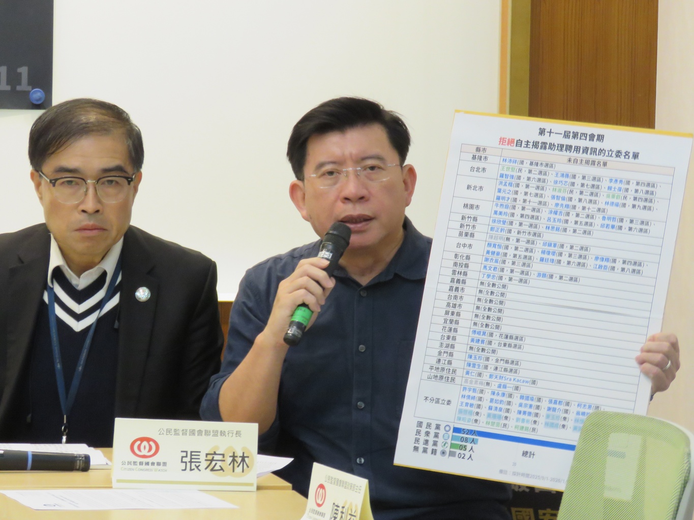 (補充說明:民進黨立委林楚茵、林淑芬於公督盟本日(3/11)記者會當日,提供揭露利益衝突資訊,故拒絕自主揭露助理聘用資訊的立委名單進行更新)