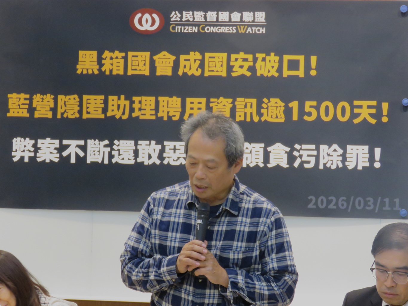 公督盟理事潘威佑表示,「當前立法院出現的黑箱與失序現象,已不只是政治問題,而是對民主治理與國家安全的重要警訊。民主國會最重要的原則是透明與責任,然而近來立法程序屢屢跳過委員會審查,法案倉促闖關;同時部分立委利益衝突資訊長期未公開,使國會監督機制形同虛設。當國會運作遠離透明與責任,民主制度就會逐漸被侵蝕。如果制度設計讓公款使用界線模糊,甚至留下詐領助理費的漏洞,不僅是廉政問題,更會動搖社會對政治制度的信任。因此我們呼籲,國會改革必須回到透明的核心:公開利益衝突資訊、落實委員會審議,並建立完善的廉政與國安防護機制。台灣的民主,是幾個世代共同努力建立的成果,我們期待國會重新成為民主治理的典範,而不是黑箱政治的象徵。民主制度最重要的力量,就是讓權力在陽光下被充分檢驗。」