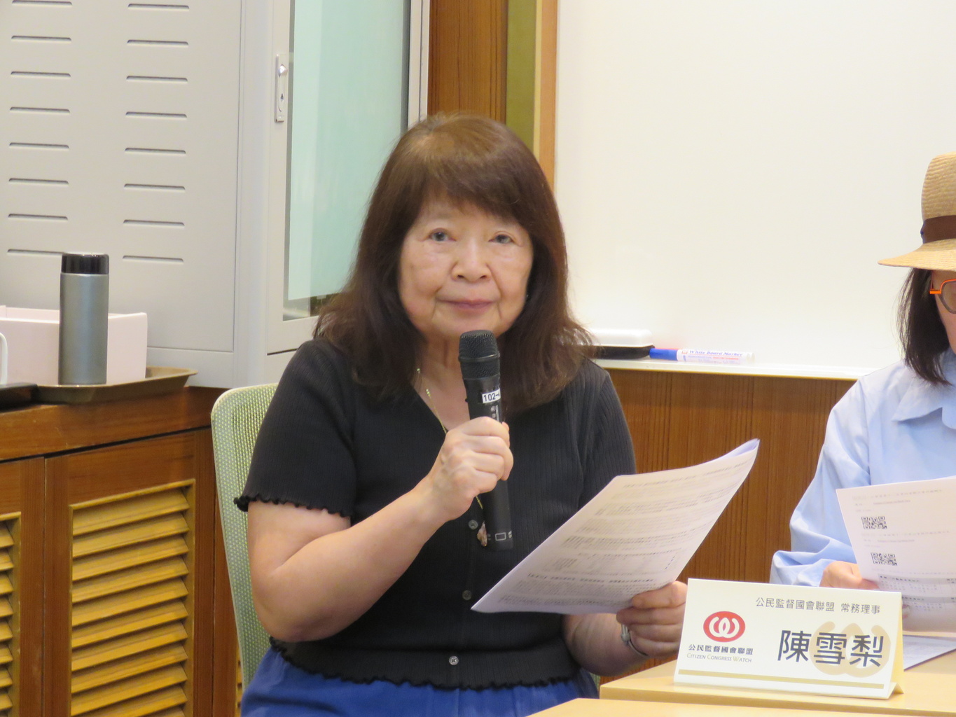 公督盟常務理事陳雪梨表示:「依照《立法院程序委員會組織規程》第四條規定,其職掌僅限於『形式審查』,而不能針對法案內容實質討論,杜絕惡意的政治攻防,讓提案直接消失,此制度設計的初衷,正是為了杜絕惡意的政治攻防,防止政黨濫權讓特定提案在進入院會前就『直接消失』;然而,本會期的程序委員會卻持續失控,淪為在野黨濫用多數優勢、沒收法案討論的政治工具!