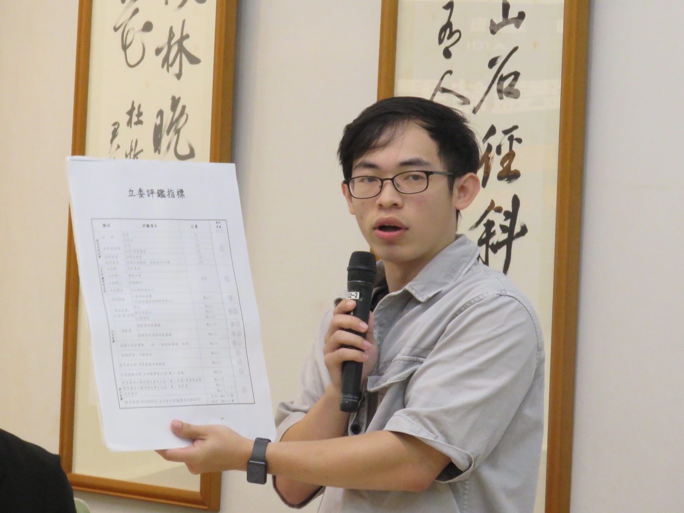 公督盟理事長謝東儒表示:「有別於其他立委評鑑機構,只著墨於法律提案上,公督盟立委評鑑則是依照憲法賦予立委職權所設計的評鑑指標,共有24大項,並可細分為51項指標,主要使用立法院公開資料,進行質量兼具的立委評鑑。同時導入參與式民主的概念,讓上千位公民評比立委質詢;最後,相當遺憾國民黨、民眾黨本會期拒絕揭露公費助理聘用、立委兼職…等資訊,嚴重違背公督盟「優秀立委」應具備的陽光透明原則,因此在本會期國、眾兩黨無人獲獎,特予說明!」