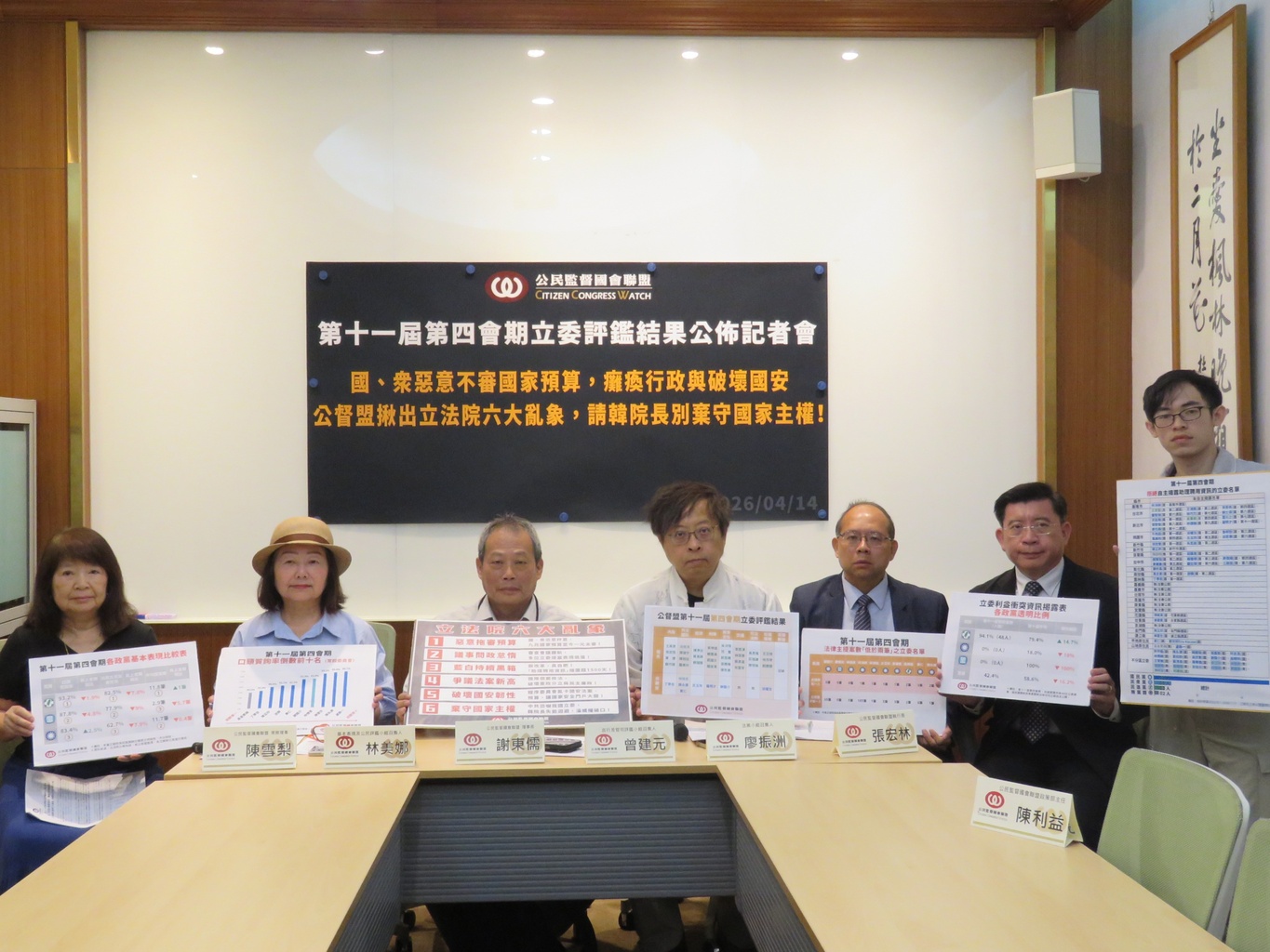 【公督盟記者會】第十一屆第四會期立委評鑑結果公佈